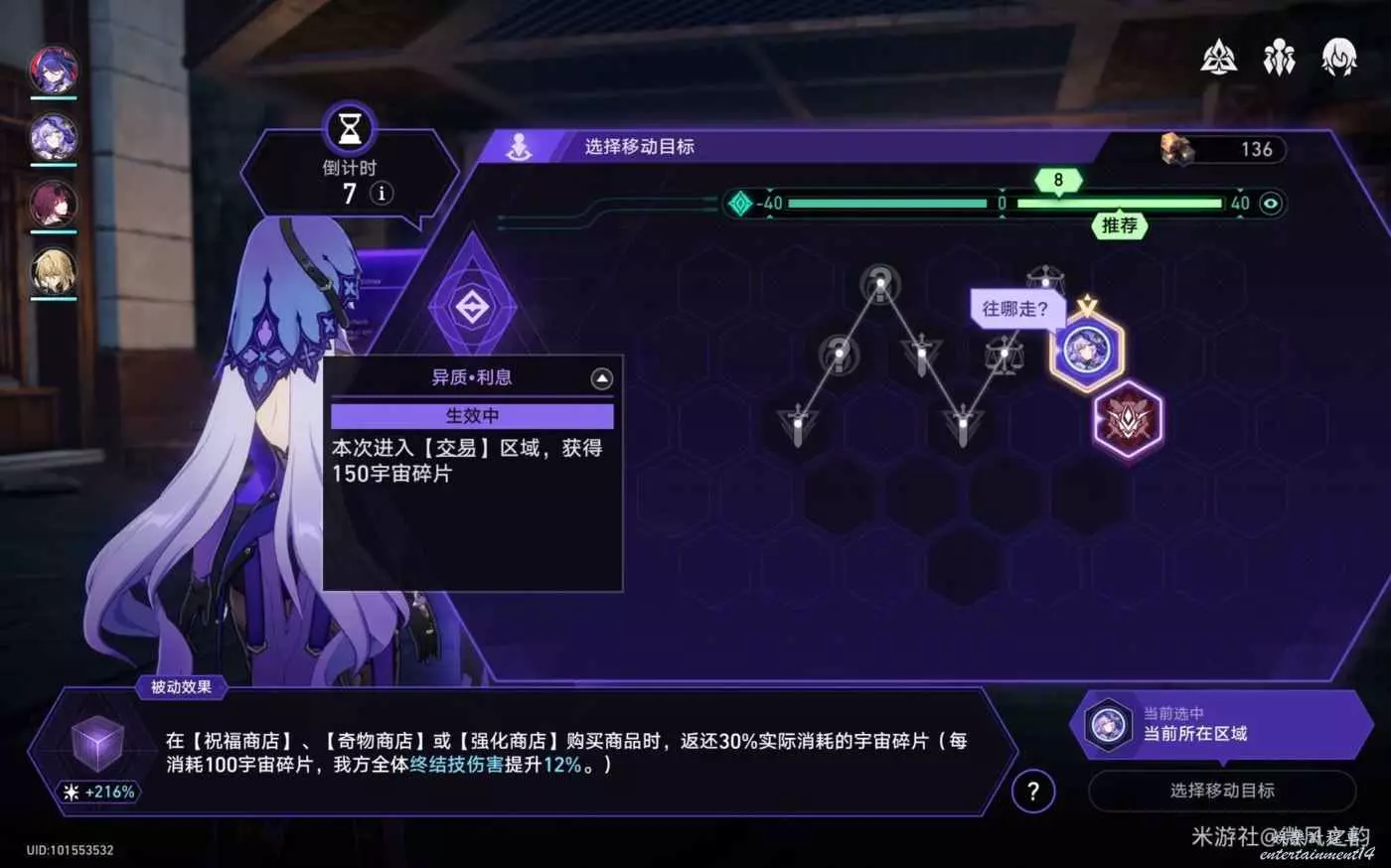 然後此時為了多拿一點宇宙碎片進入戰鬥位面。結果因為位面變動,直接給我後面兩個交易區給變成其他區域了,導致最後有1600的宇宙碎片沒用出去。