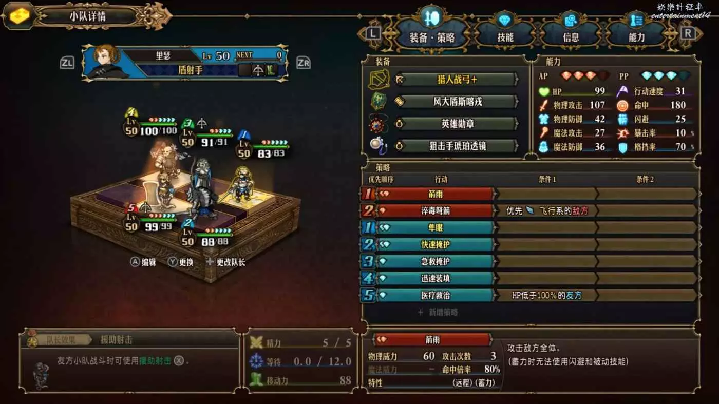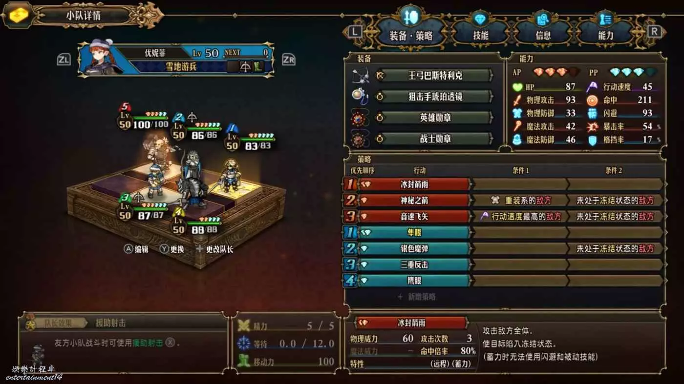 得益於盾弩A+(140)的高攻,單發輸出明顯高於冰封箭雨。倍率來講對步兵是超過龍騎天降的,但畢竟有盾少個飾品位,平時還少了韁繩的20%加攻,所以也沒多太多。獵手就救不了,物攻是最低的B-(110),沒比尤尼菲強多少。其他幾個弓偏輔助不討論。