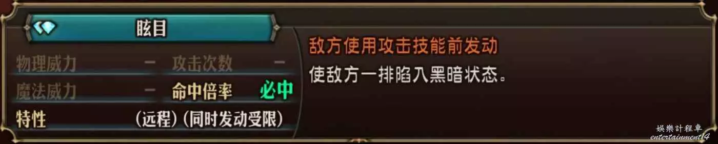 2.流程到教國會出現天使弓,被動炫目上黑暗,優先比必中高,正在放核爆的人會攻擊無效,由於發動受限導致其他友軍也無從解狀態。可以通過減益/異常無效、黑暗無效等手段規避。在教國解放右下城市後能獲取燈火戒指,也可以拉一個最快的人用一個主動技給全隊上防黑暗
