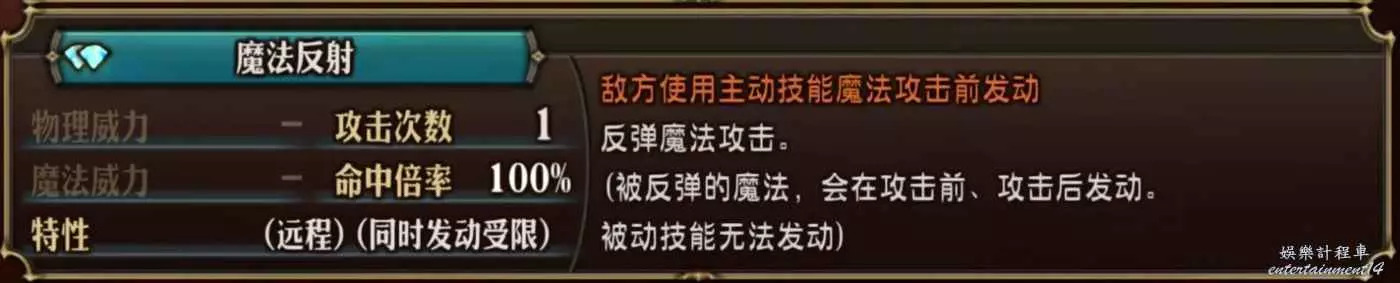 自帶冰凍,50×3魔法倍率。純魔法攻擊,會被盾天使的魔法反射、白騎的魔免克制。