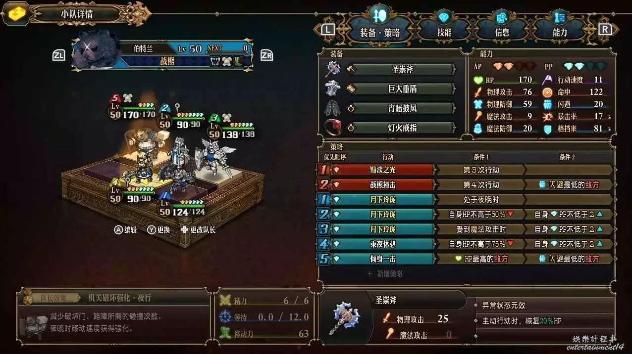 2. 熊傾身一擊的命中飽受詬病,梟可以給後排加50命中,我熊還帶了燈火戒指再加30,最終命中就能堆到200以上,這樣就很靠譜啦。