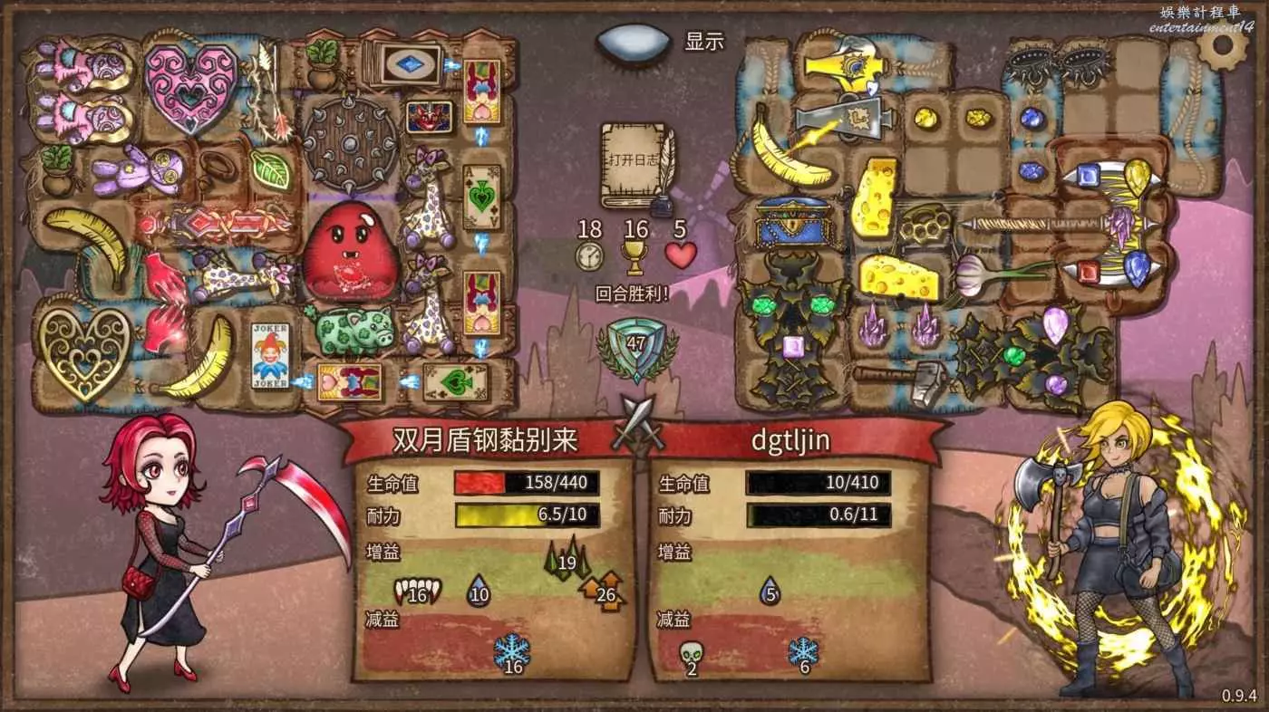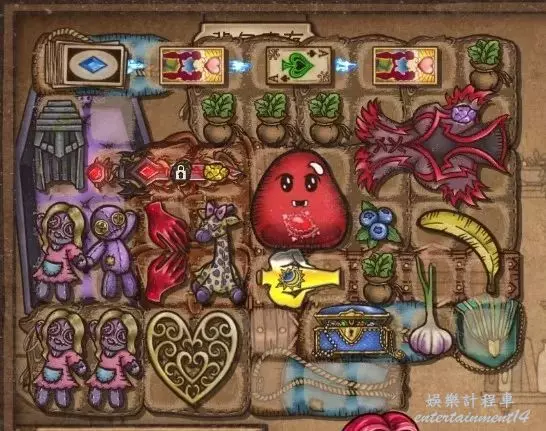 5-7回合:卡牌、草藥等優先順序不變。見到饑餓之刃或者荊棘之鞭就買下替換前期買的打折鍋打折掃把之類的武器。此時如果見到吸血石一定要拿下,優先合成吸血黏黏。關於水果,可以開始拿藍莓,但不建議拿原價鳳梨,因為尖刺太多了會干擾我們最大buff的數量,我們還是希望能提升心或者吸血的數量,而不是尖刺。