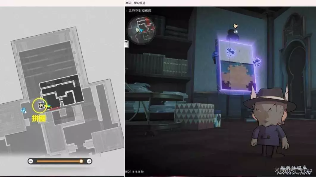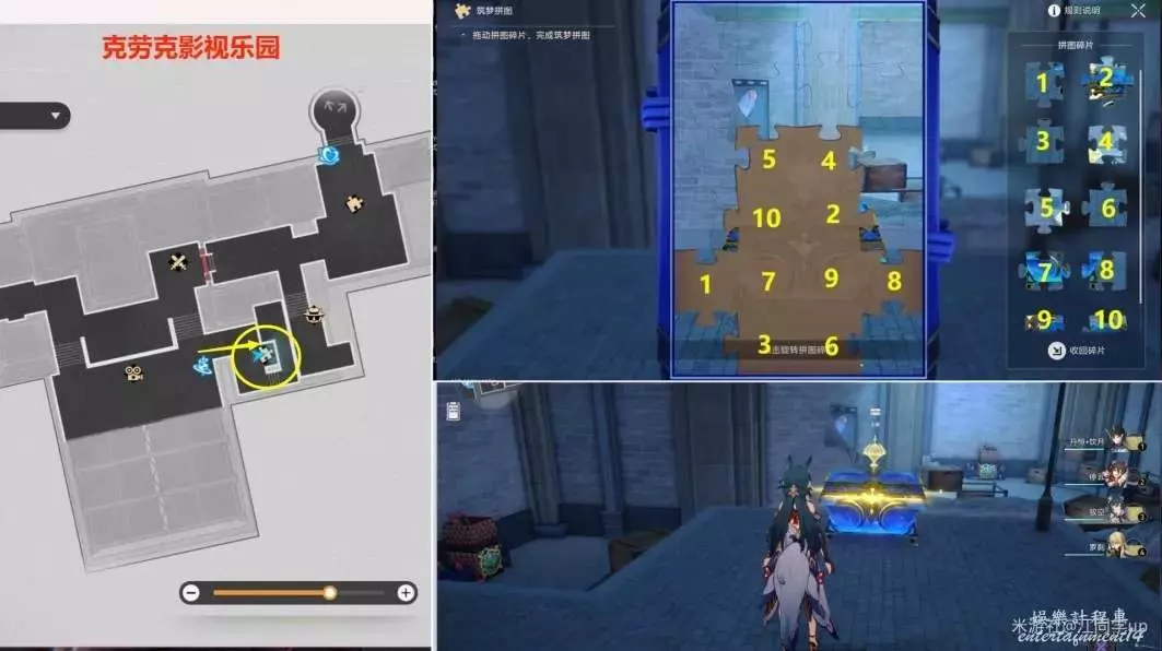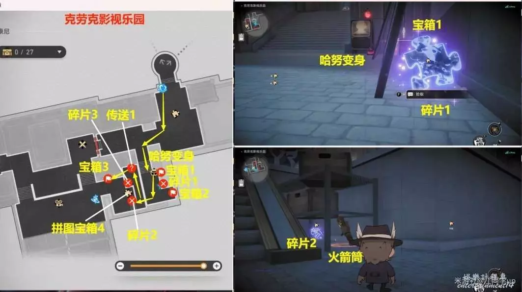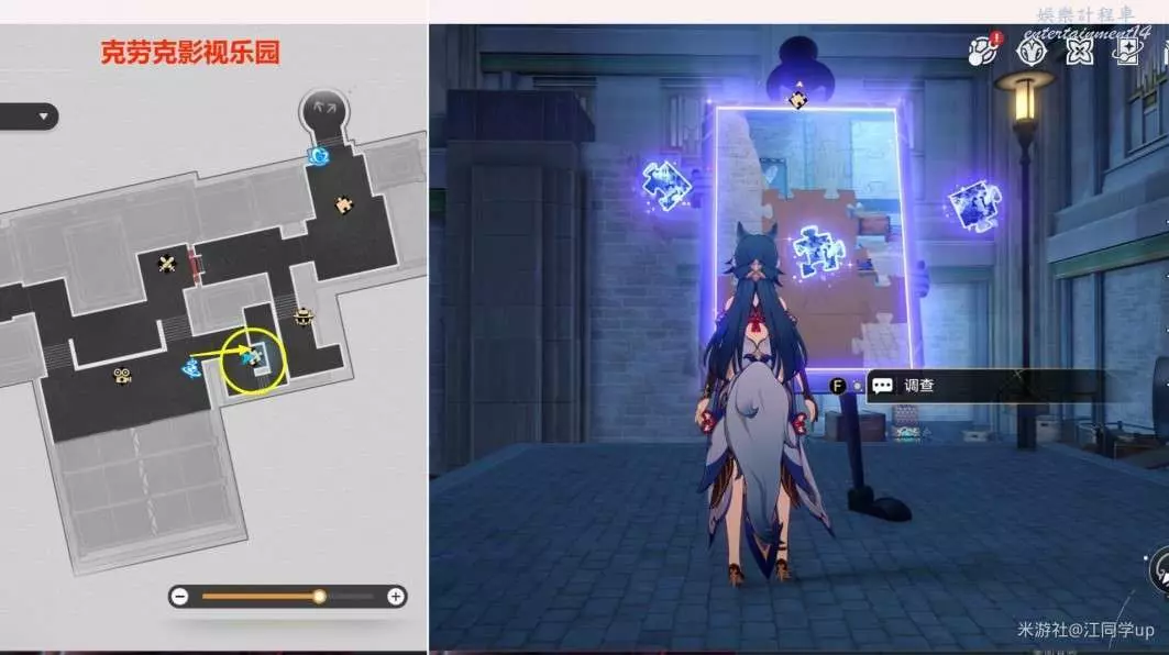 1.來到【克勞克影視樂園】下圖拼圖位置【調查】後,3個拼圖碎片會飛走。