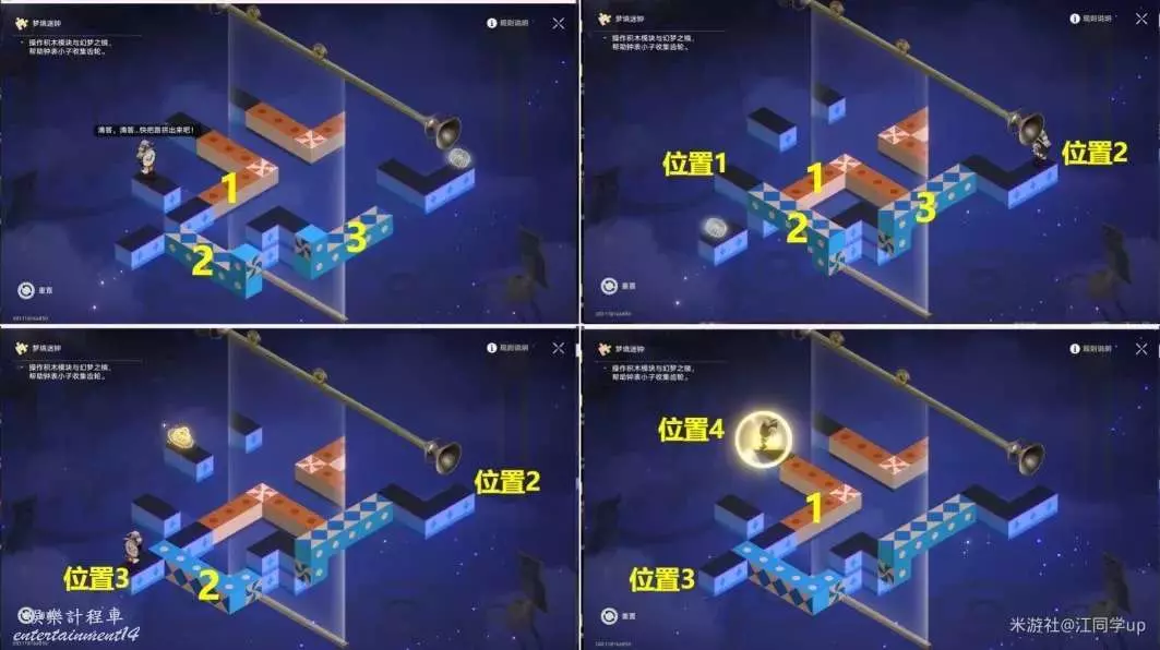 將2藍色模組點擊旋轉1次,【鐘錶小子】會從位置2到位置3。