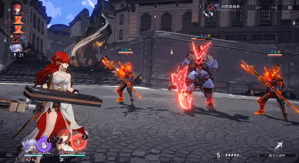 單體攻擊,額外行跡能力給敵人上灼傷狀態。