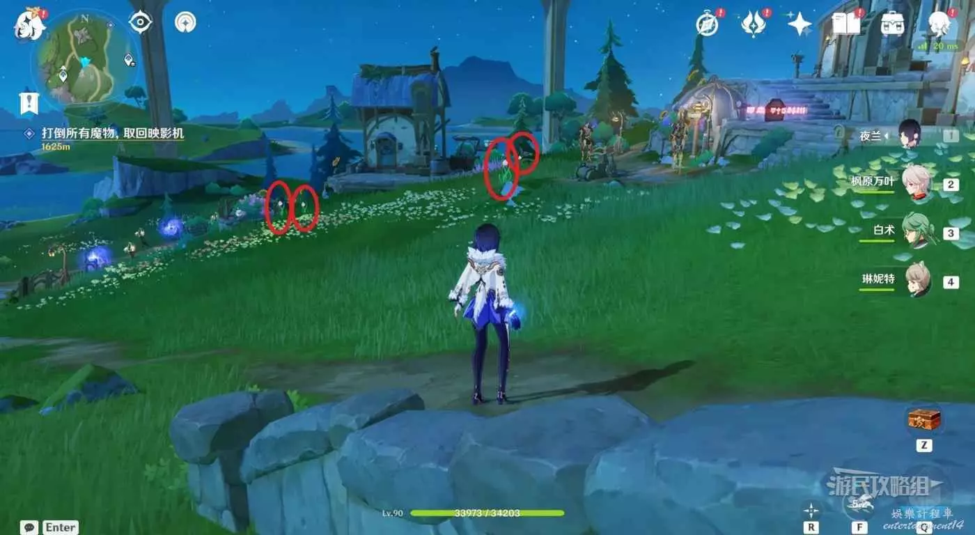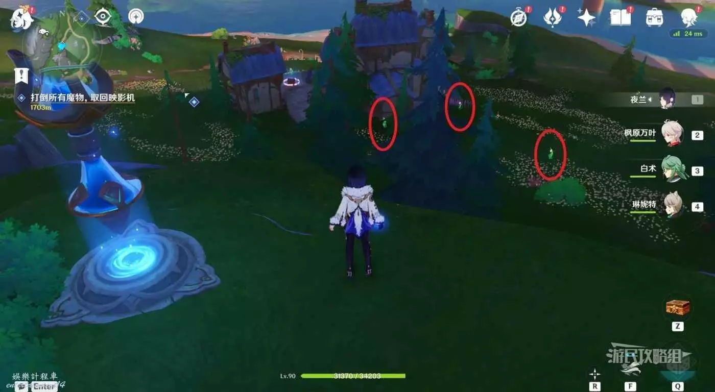 1.上圖紅色路線傳送錨點往下看,在房子前有3個