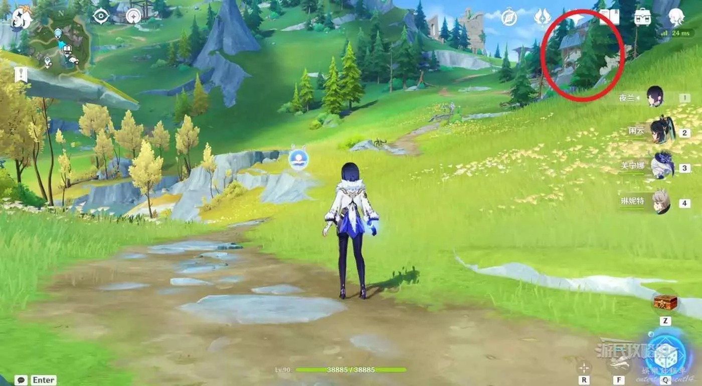 1.從傳送錨點位置往山坡上的房子所在方向前進。