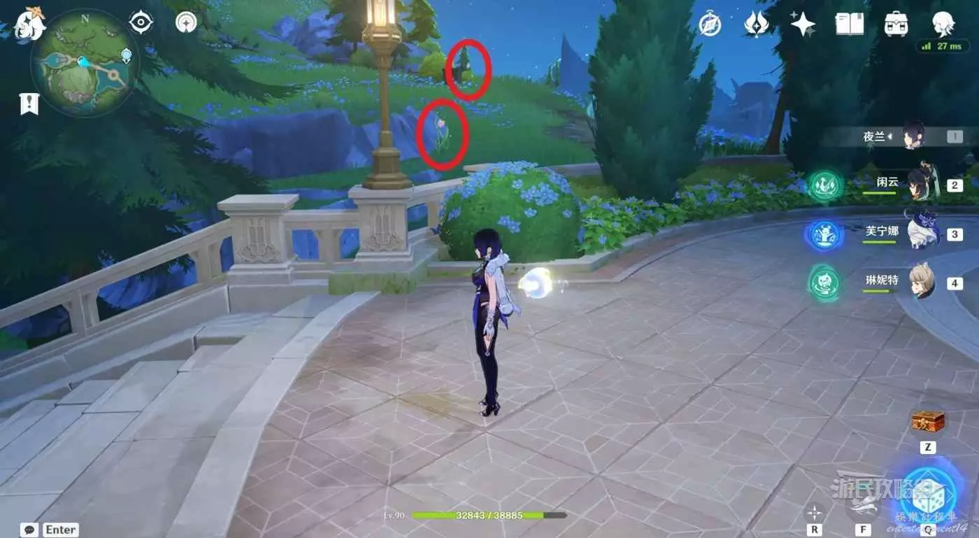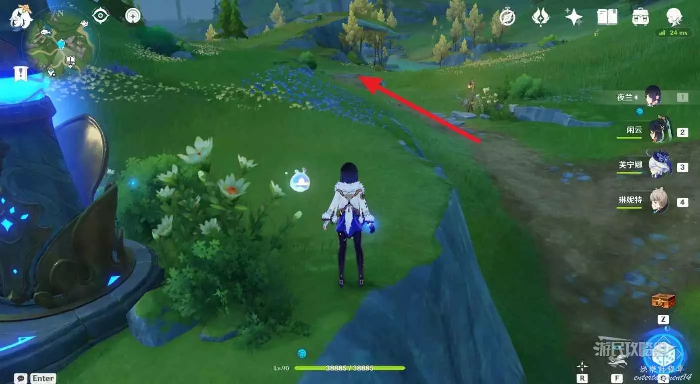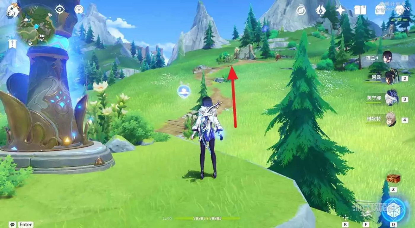 1.從露景泉傳送錨點出發,走到中間露景泉位置後左走。
