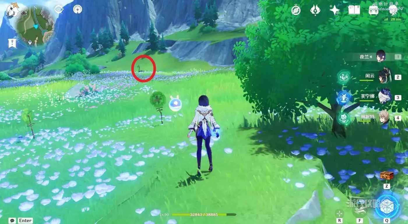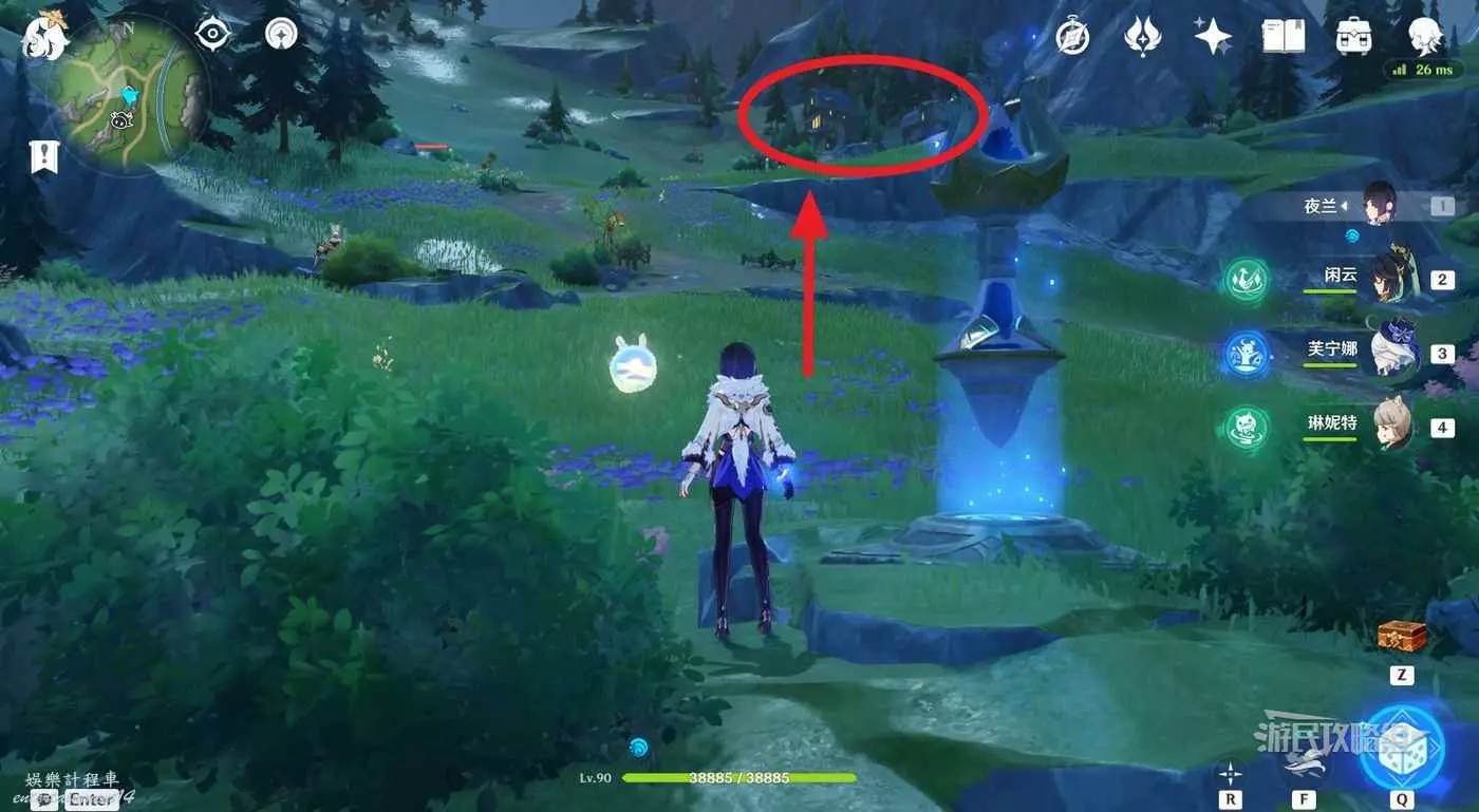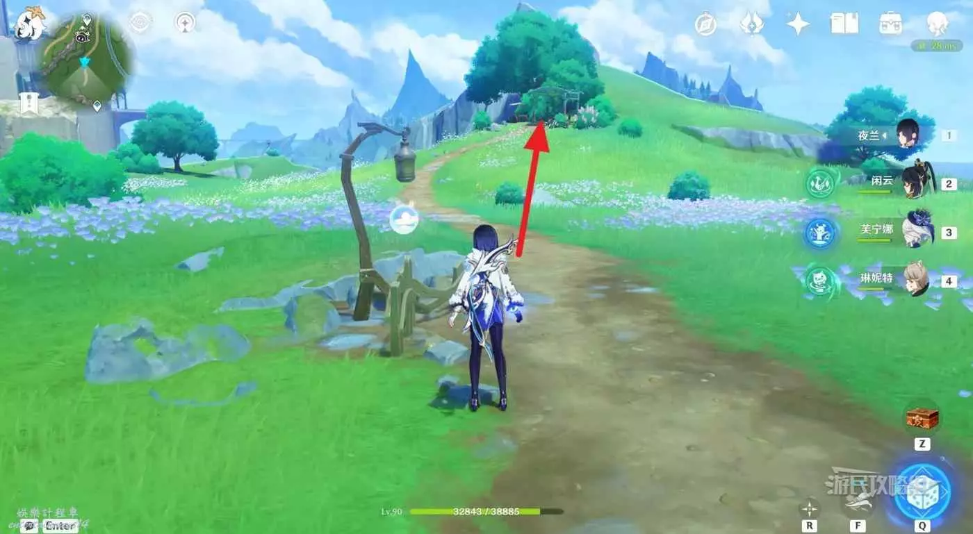 1.在傳送錨點位置往北邊一棵大樹方向前進,繞到樹後面。