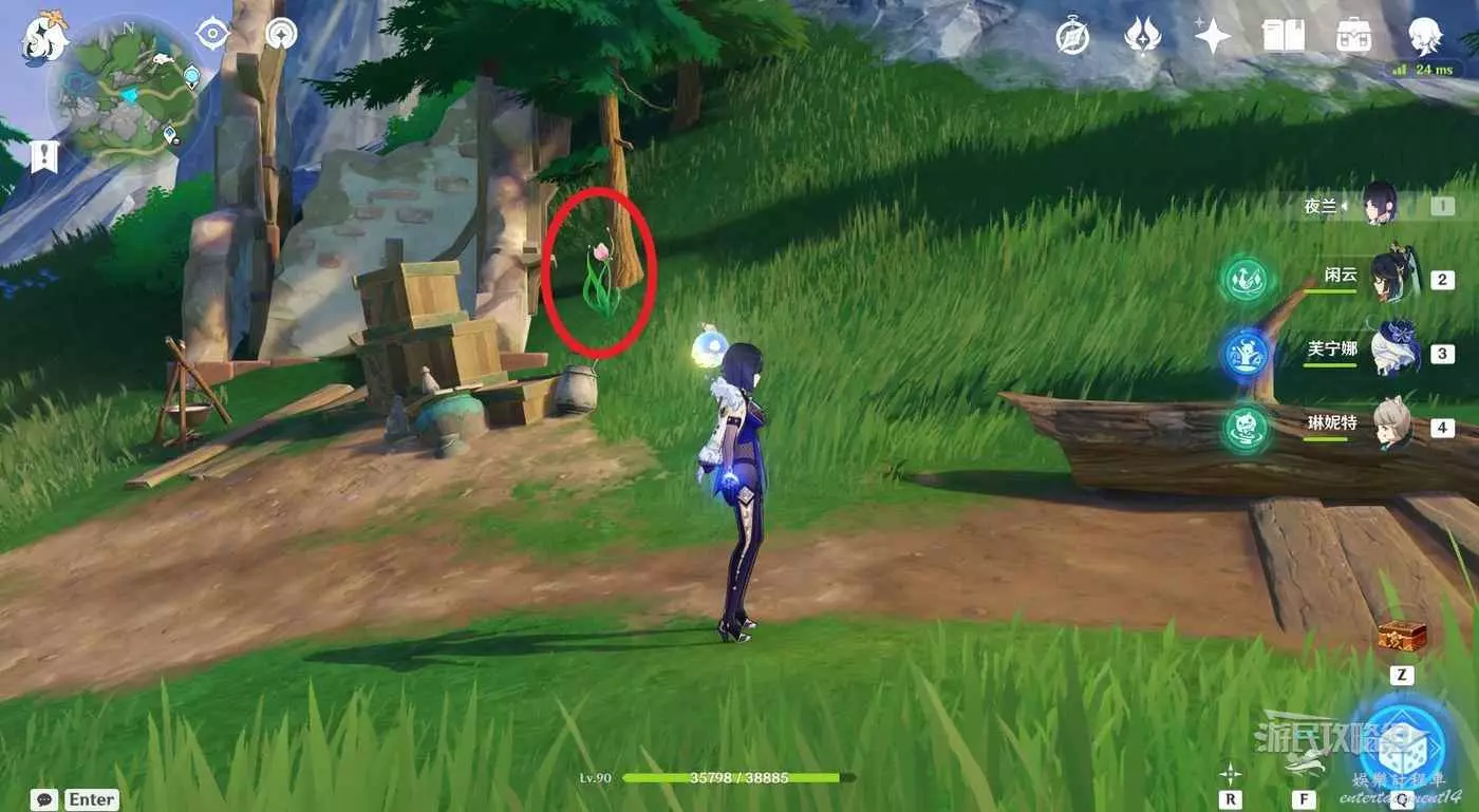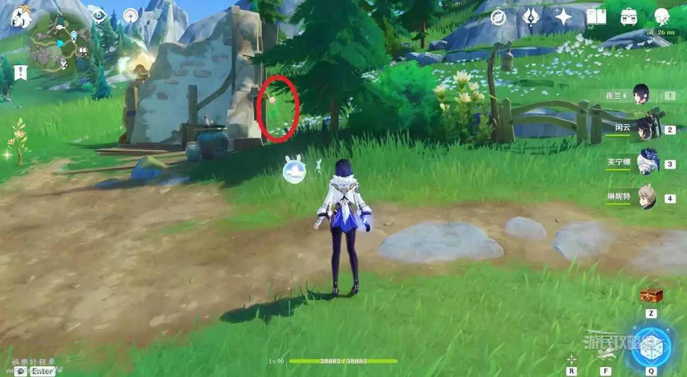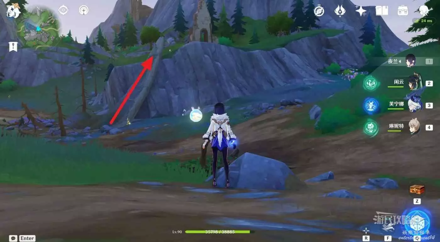 1.在傳送錨點位置往北邊一棵大樹方向前進,繞到樹後面。