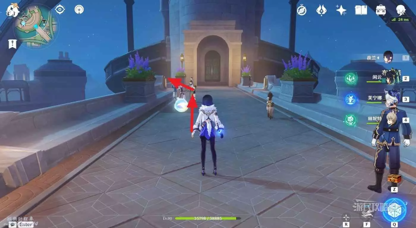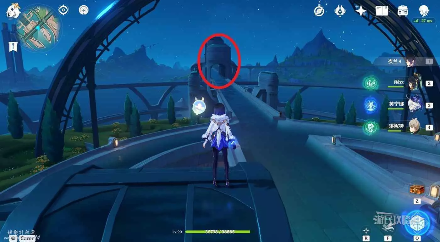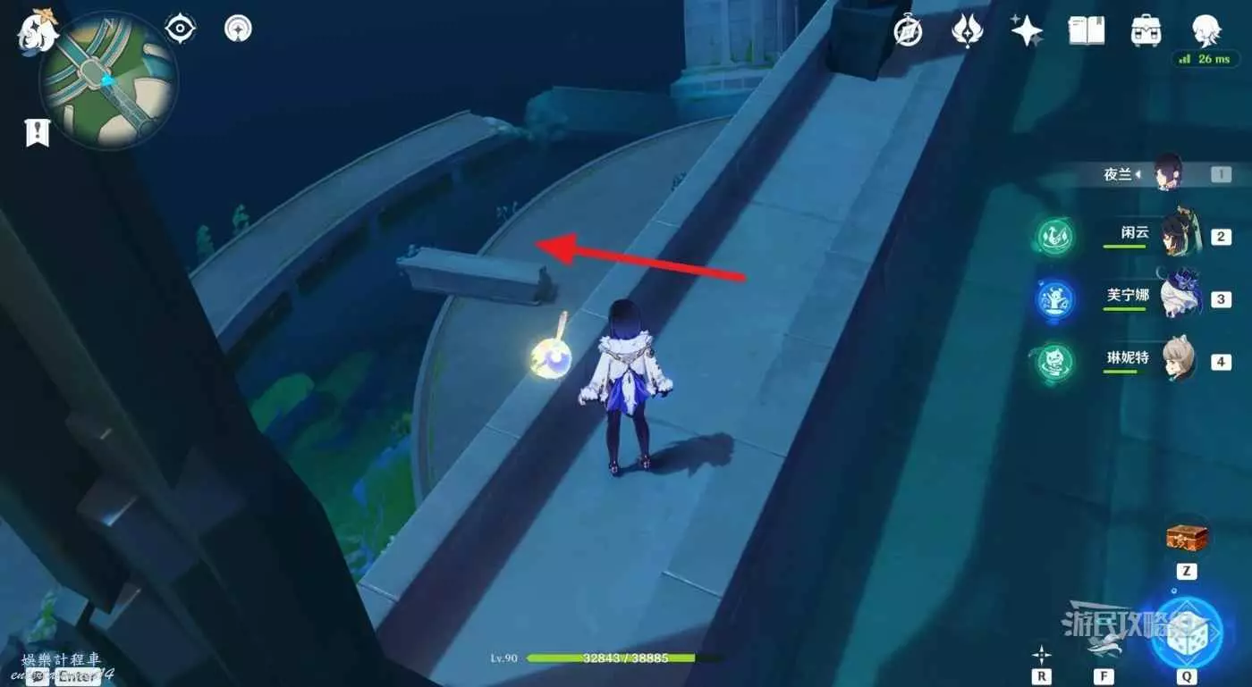 1.從楓丹廷七天神像出發,穿過電梯繞到電梯後方,沿著巡軌船的航線前進。