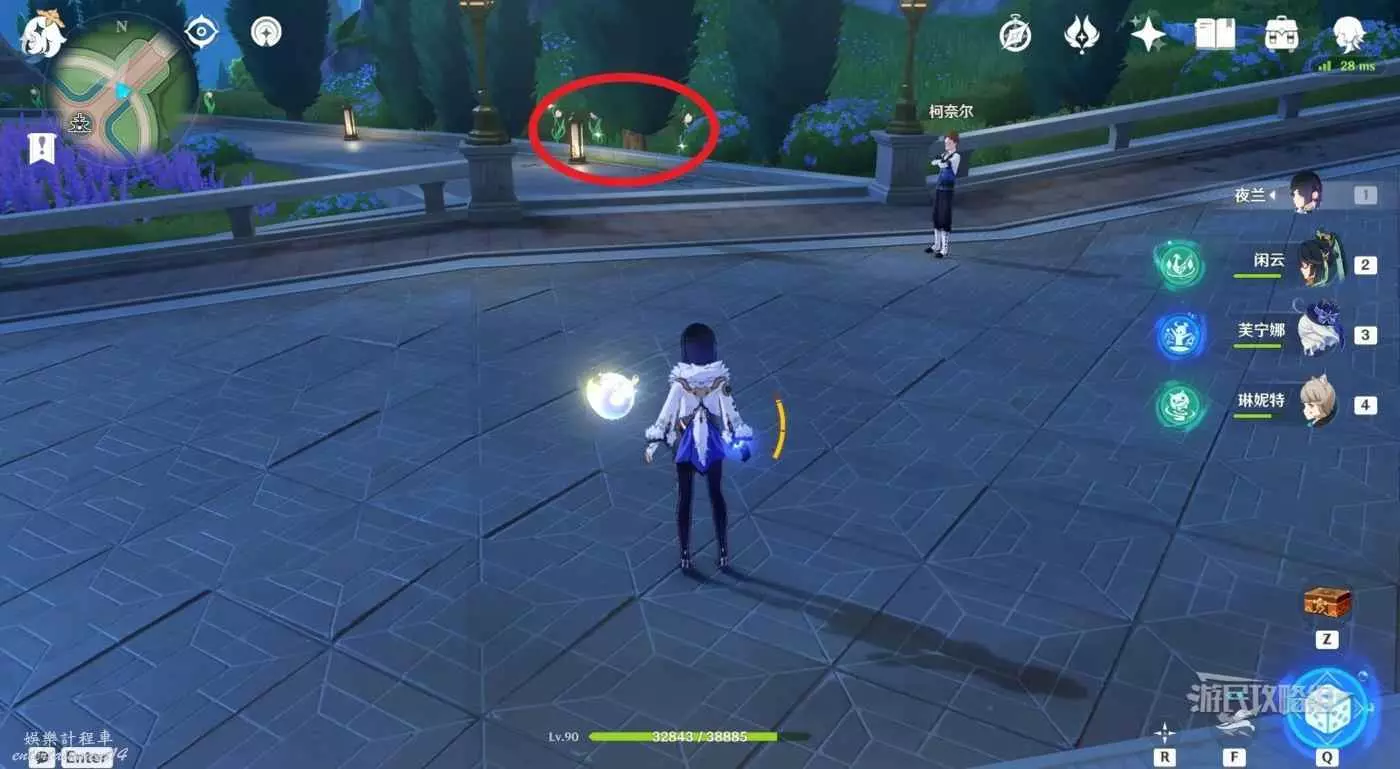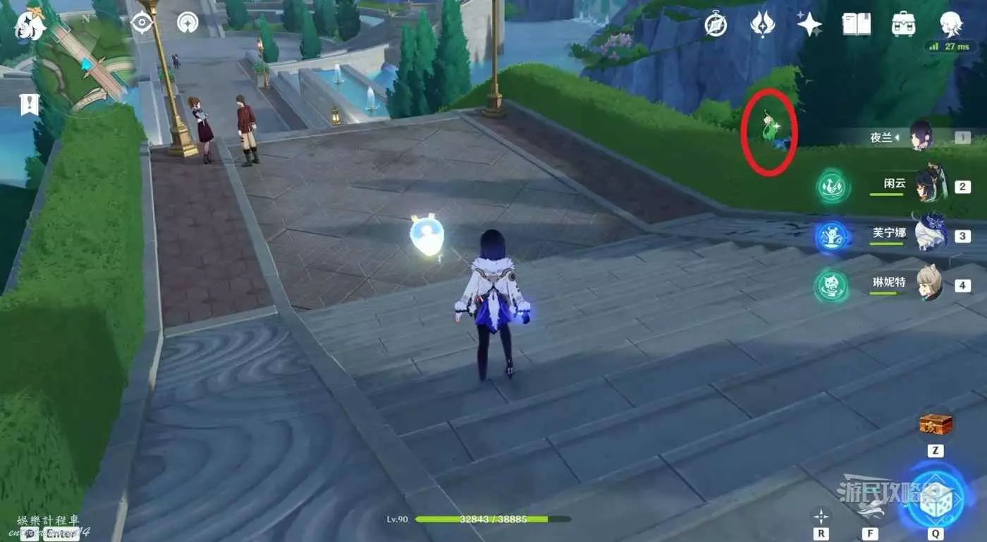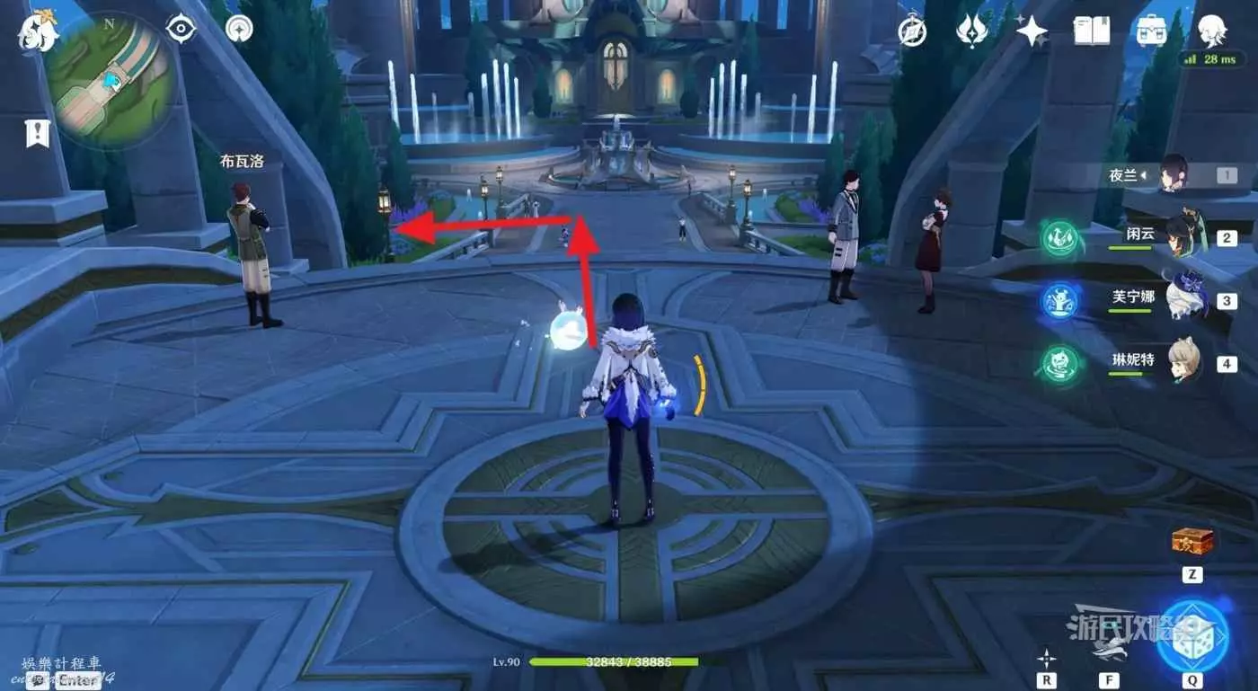 1.從楓丹廷七天神像出發,穿過電梯繞到電梯後方,沿著巡軌船的航線前進。