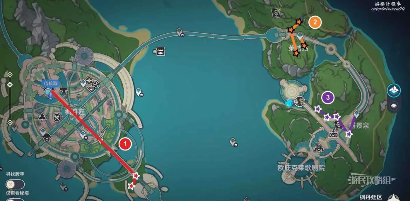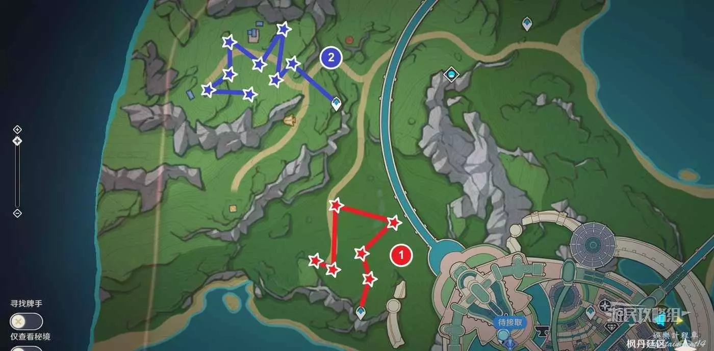 楓丹東南邊收集路線(16個)