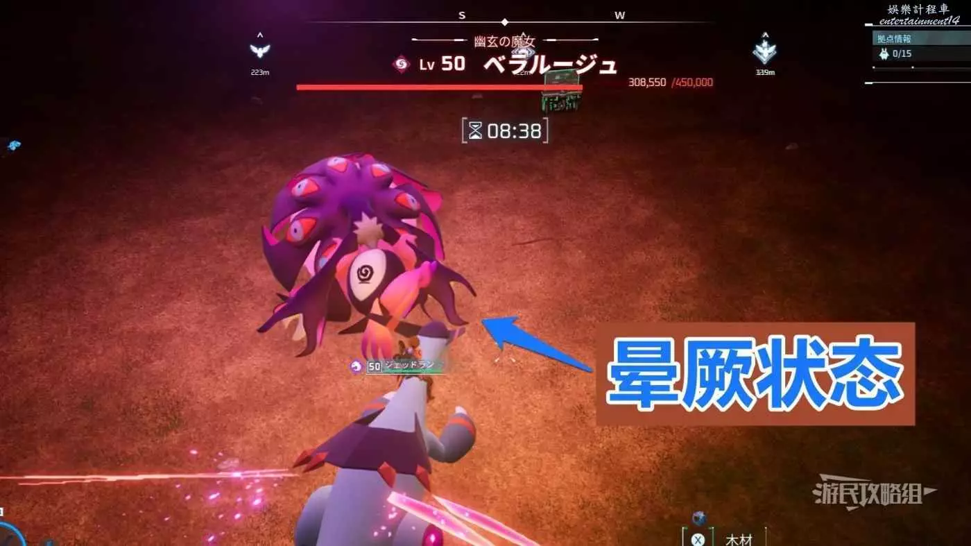 將貝菈露潔的HP削減至大約「315,000」和「180,000」時,它會進入暈厥狀態。在暈厥狀態期間可以集火攻擊,也可以根據自身狀態恢復HP、更換帕魯等,因此要不斷關注它的血量,儘量抓住這段時機來補給自身或打出大量傷害。
