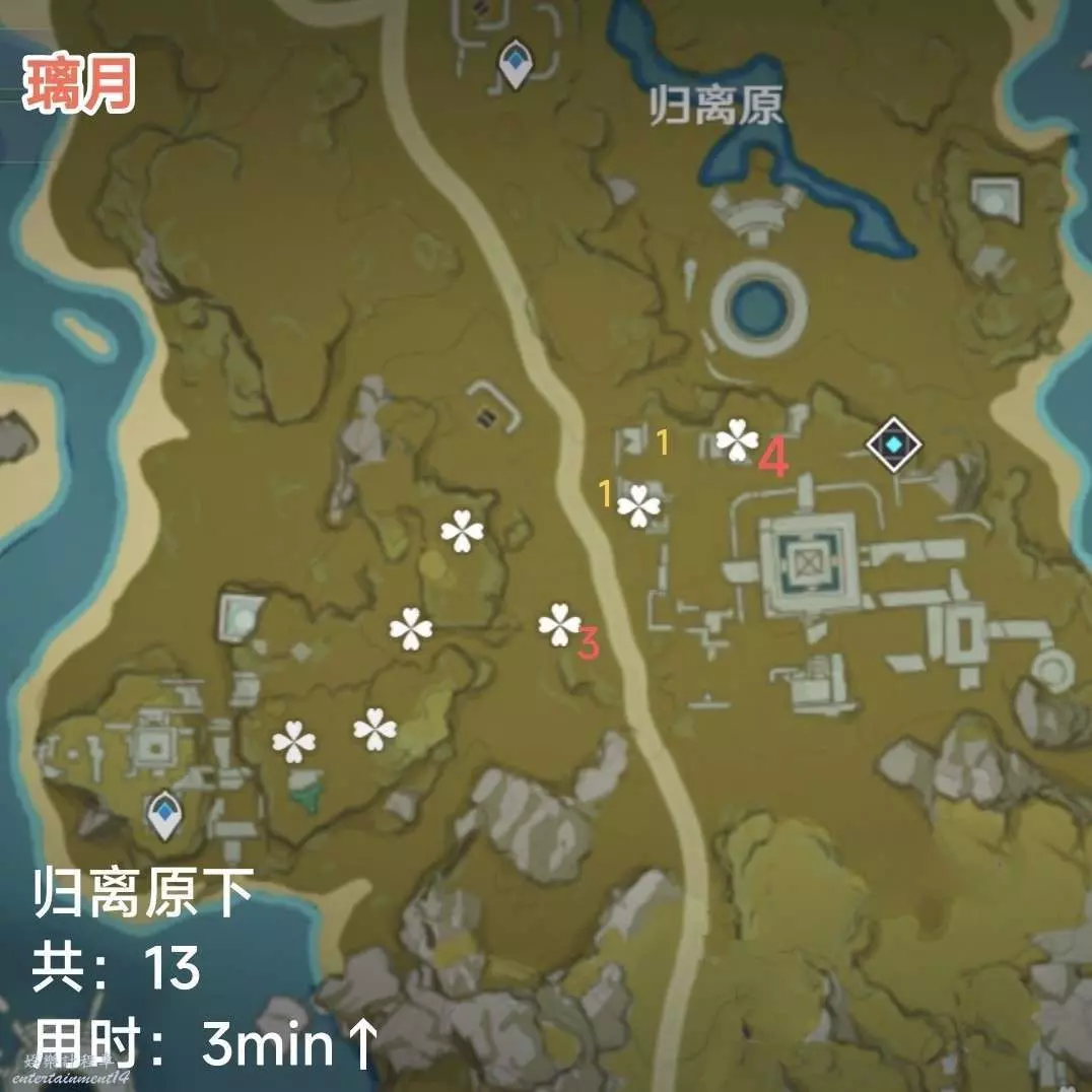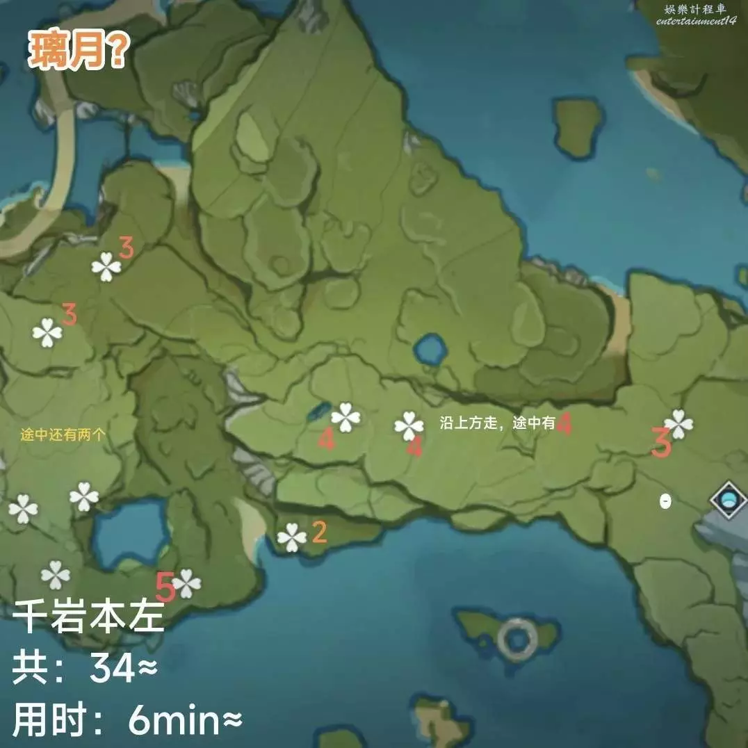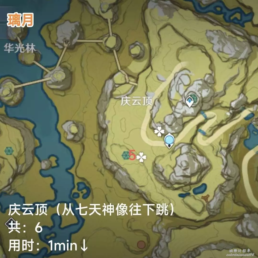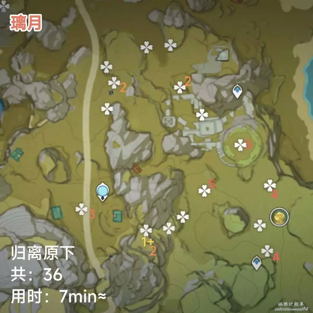 原神 (Genshin Impact) 甜甜花採集路線分享 9 4 月 2024-04-09 廣告 作者:愛來自水稻的妻子 來源:米遊社論壇 注意:圖中所有時間按快速收集的兩倍時間計算,實際時間會短一半以上。 標有數位的點位元可以直接用草神掃碼,建議第一次先踩點每個甜甜花的位置,再找一個固定位置掃(特別是璃月天遒谷),之後直接在固定位置掃就行。