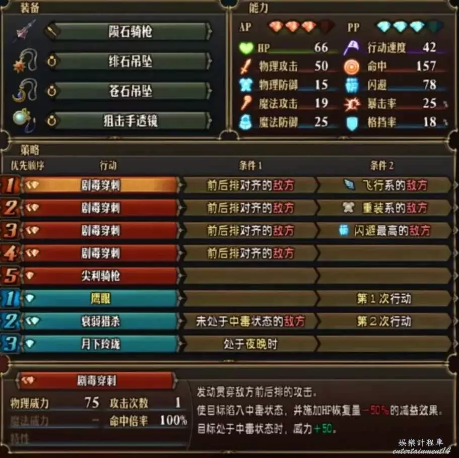 3)4點PP,1點必中,2點追擊,1點閃避。
