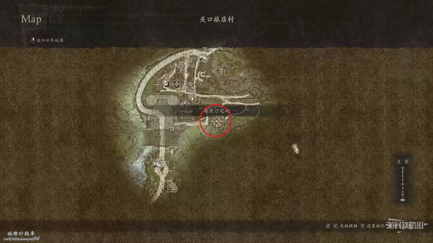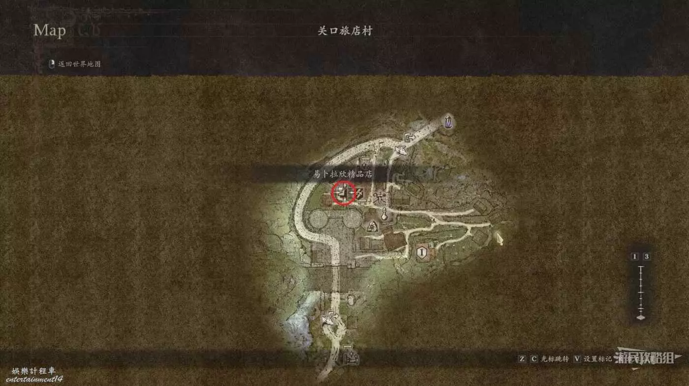 拿到3本書先不著急給,來到關口旅店村的下圖所示位置的贗品商店。