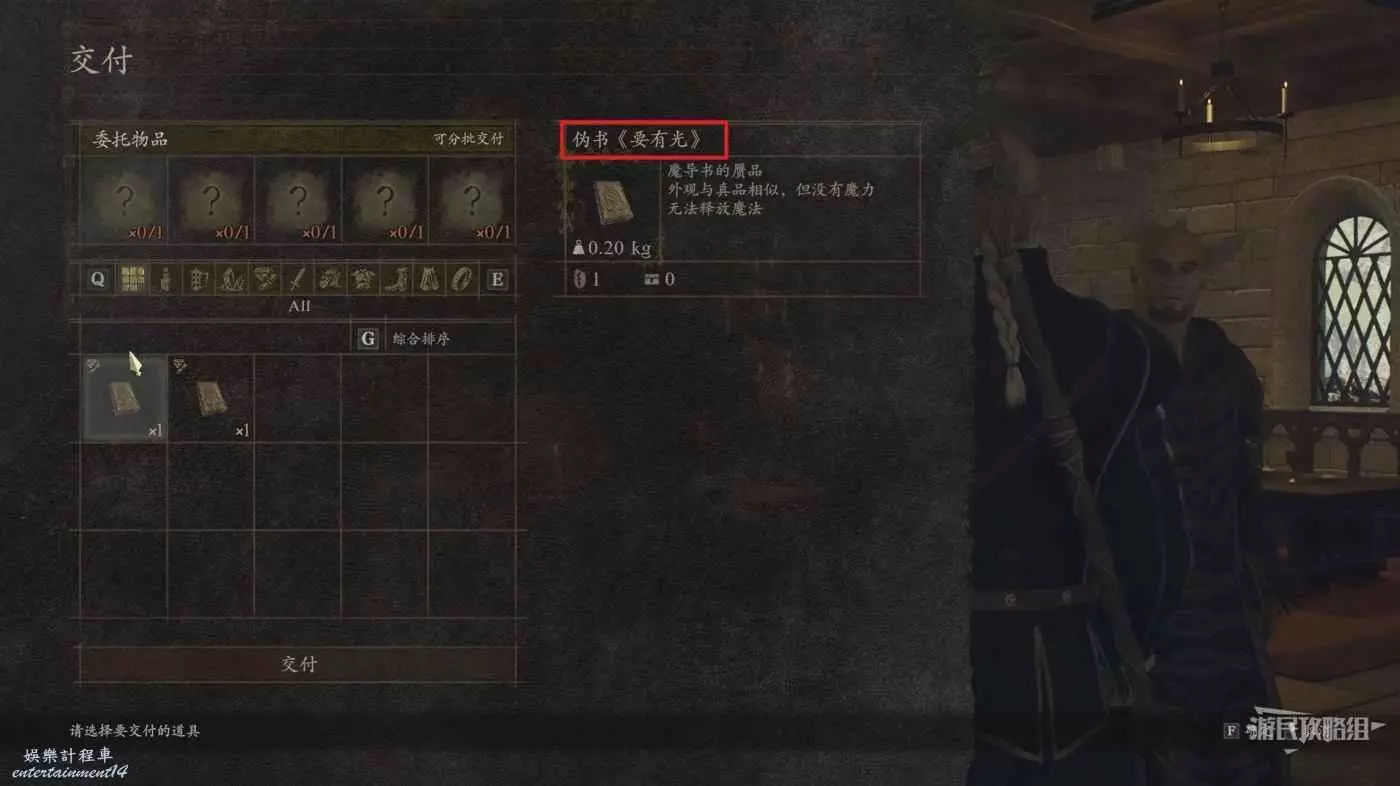 與商人對話選擇委託製作贗品,每本需要花費6000塊錢,製作3本魔導書的贗品,一會我們需要將3本贗品交給米亞汀。