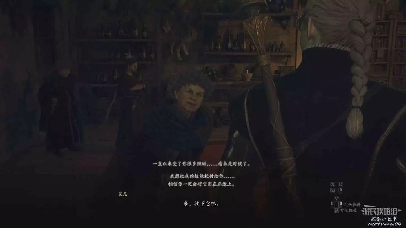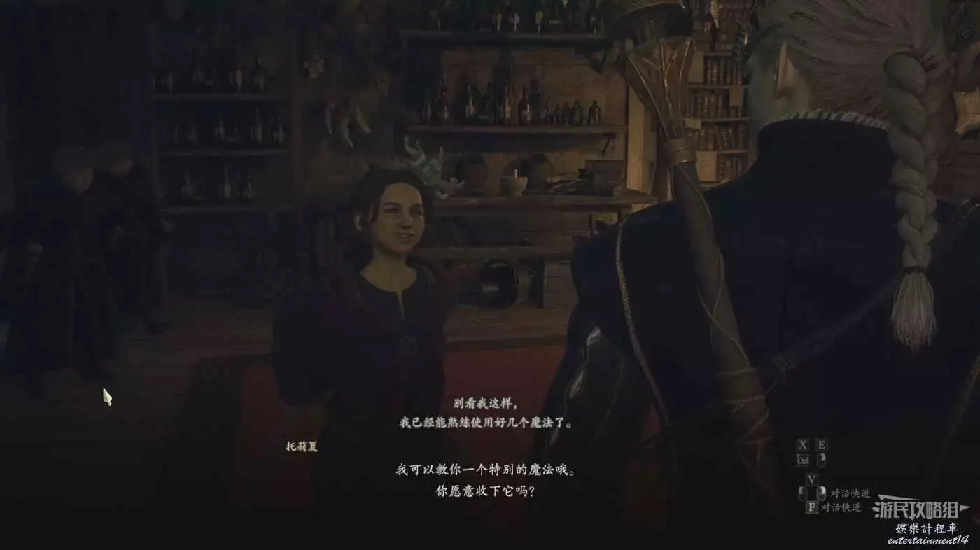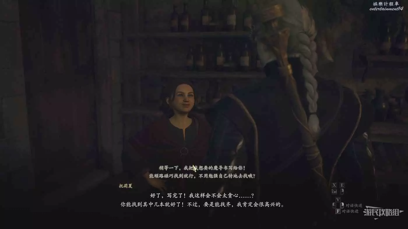 進入艾尼的家與托莉夏對話,將3本魔導書交給她,注意要在她奶奶不在的時候給,如果她奶奶一直不出去的話直接扔出去即可。