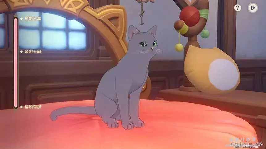 投喂貓貓後,可在「咪嗚嗚寶座」召來對應的貓貓,或者直接邀請貓貓與其玩耍。旅行者可以撫摸貓貓不同部位,提升貓貓的好感度。