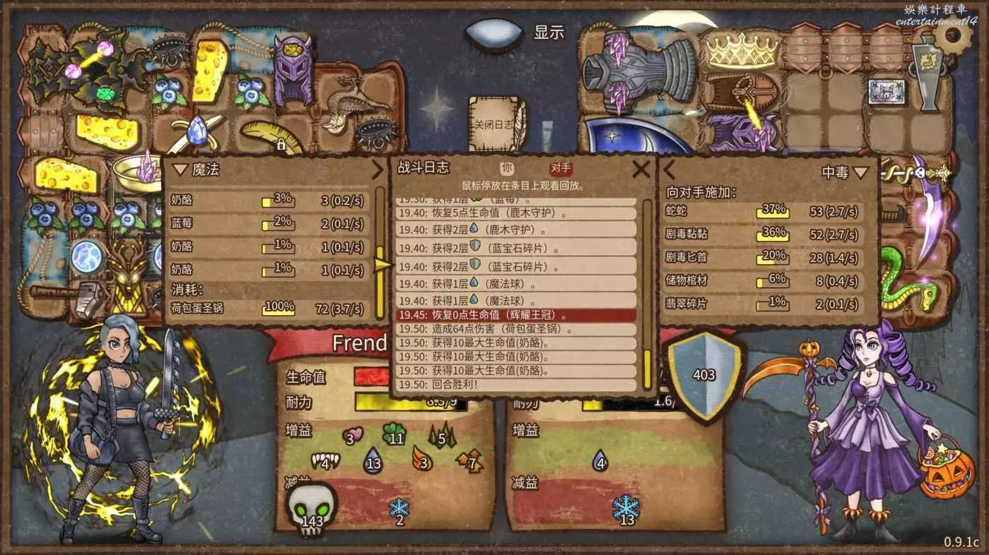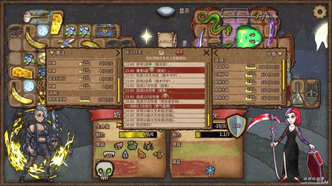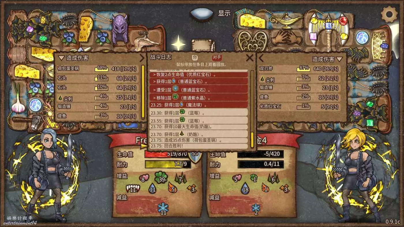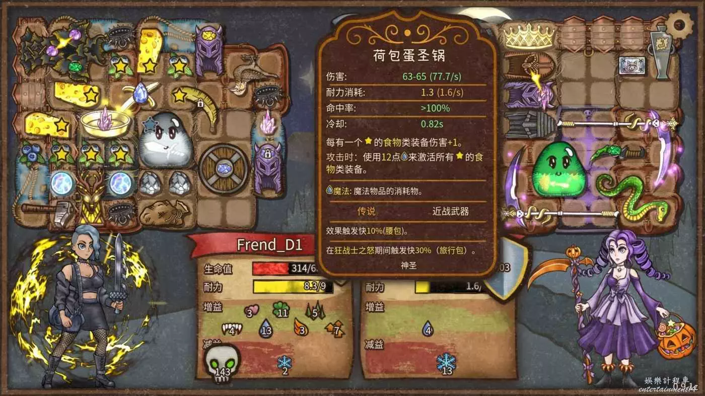 12回合遇到的一把致盲流,金鍋乳酪強度完全頂得住黑劍傷害,並且在對面20層致盲的情況下,金鍋傷害和命中都不低,不僅有鋼黏加傷,還有乳酪和藍莓給的幸運加命中,基本天克致盲流