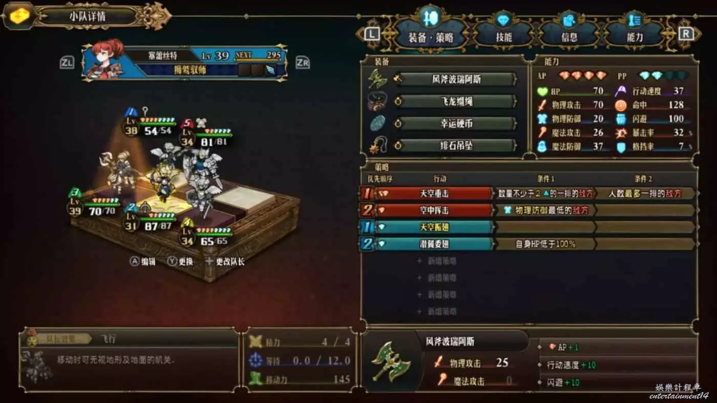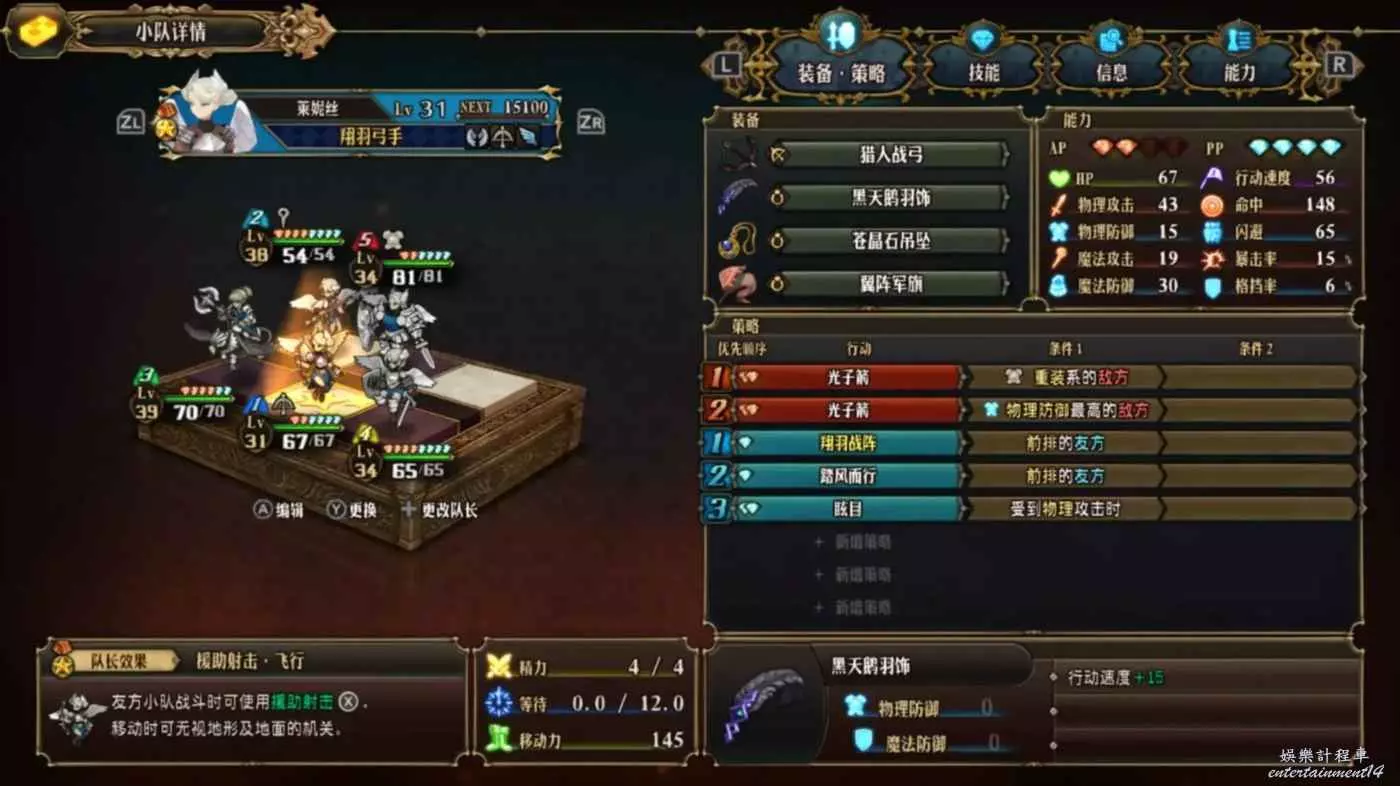 (翔羽戰陣+一層達人(三層)+勇士眼罩,提供40%攻擊(80%),20命中,50%暴擊,30%暴傷(90%),可以讓飛劍由C物攻、B命中、E暴擊,變成S物攻、S命中、S暴擊,策略設置擊殺低防敵人,夠用了)