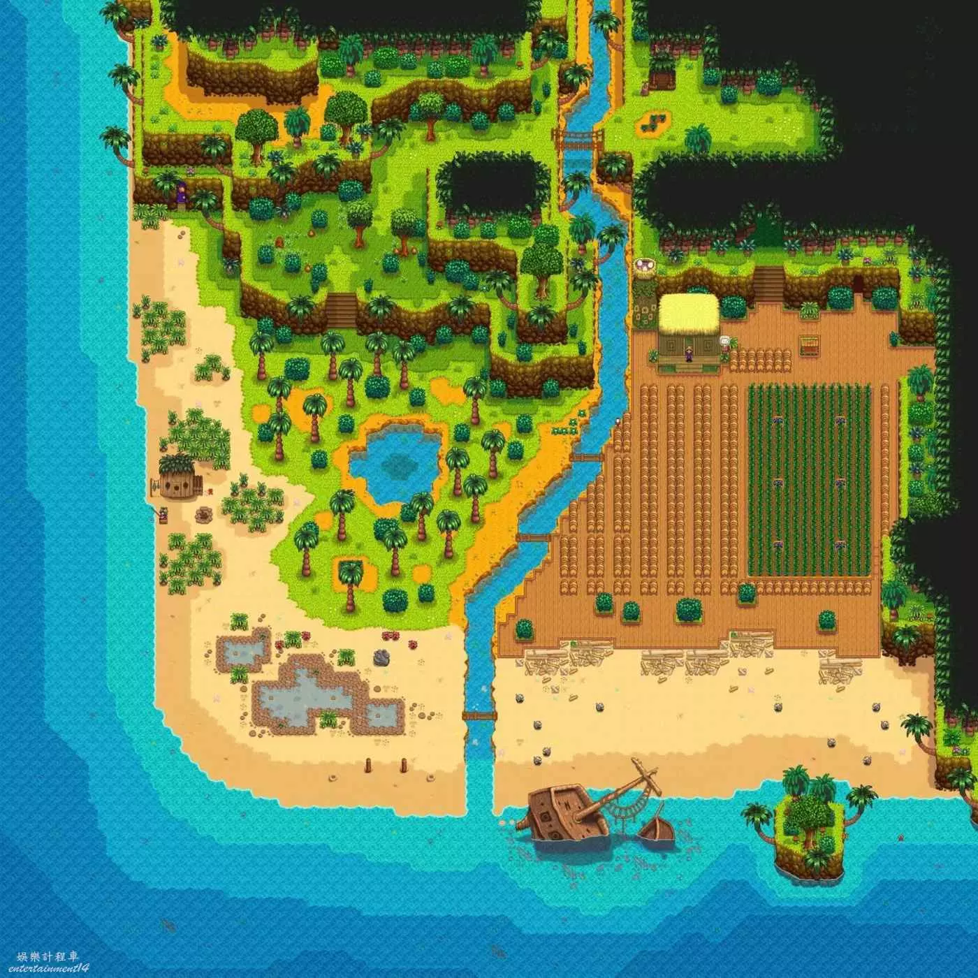 個人感覺這張地圖是是所有地圖中最不好設計的,說實話這張圖的設計我也不是太滿意。前期來錢很慢,所以一直釣魚挖礦,走了joja流快速開薑島賺錢。
