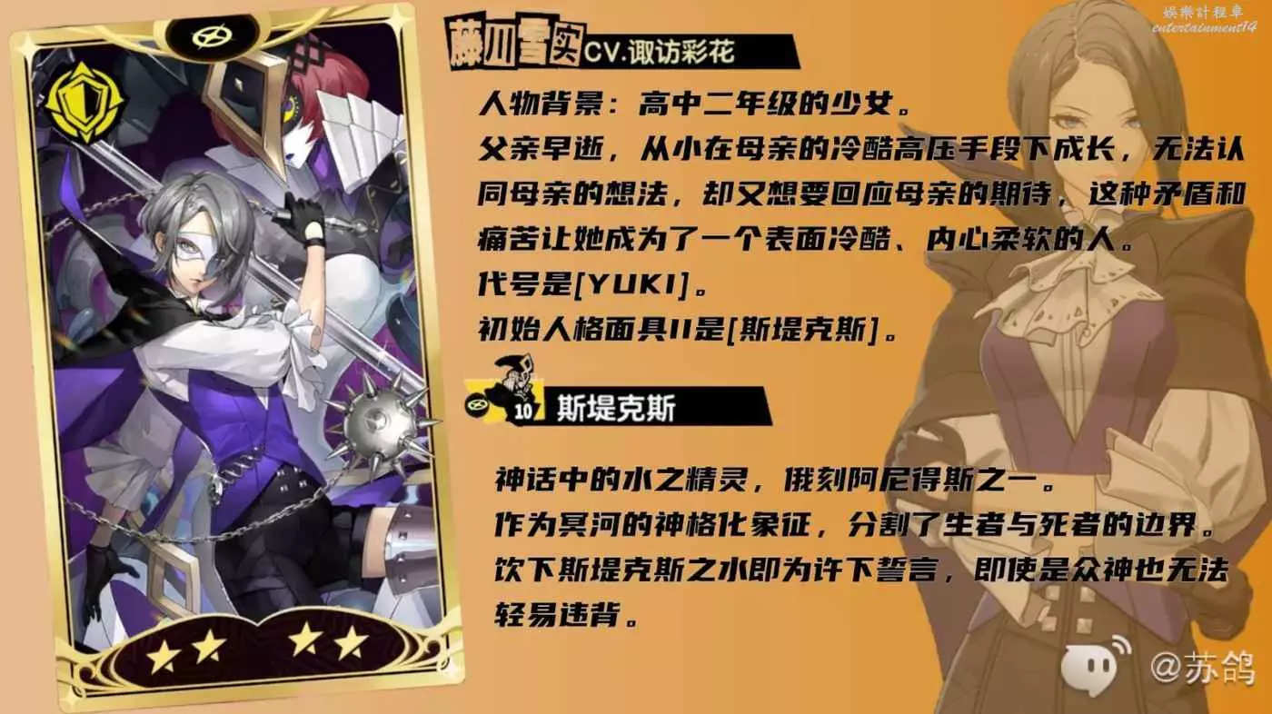 斯堤克斯:作為藤川雪實的專屬面具,初始階段可以提供很高的護盾能力,並且隨著意識階段的提升,會逐漸加強護盾的提升能力,以及【誓約】帶來的祝福加成會更多。