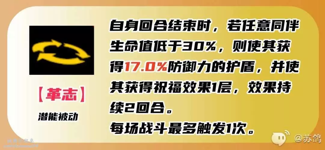 祝福:每回合恢復1%最大生命值,效果持續2回合。