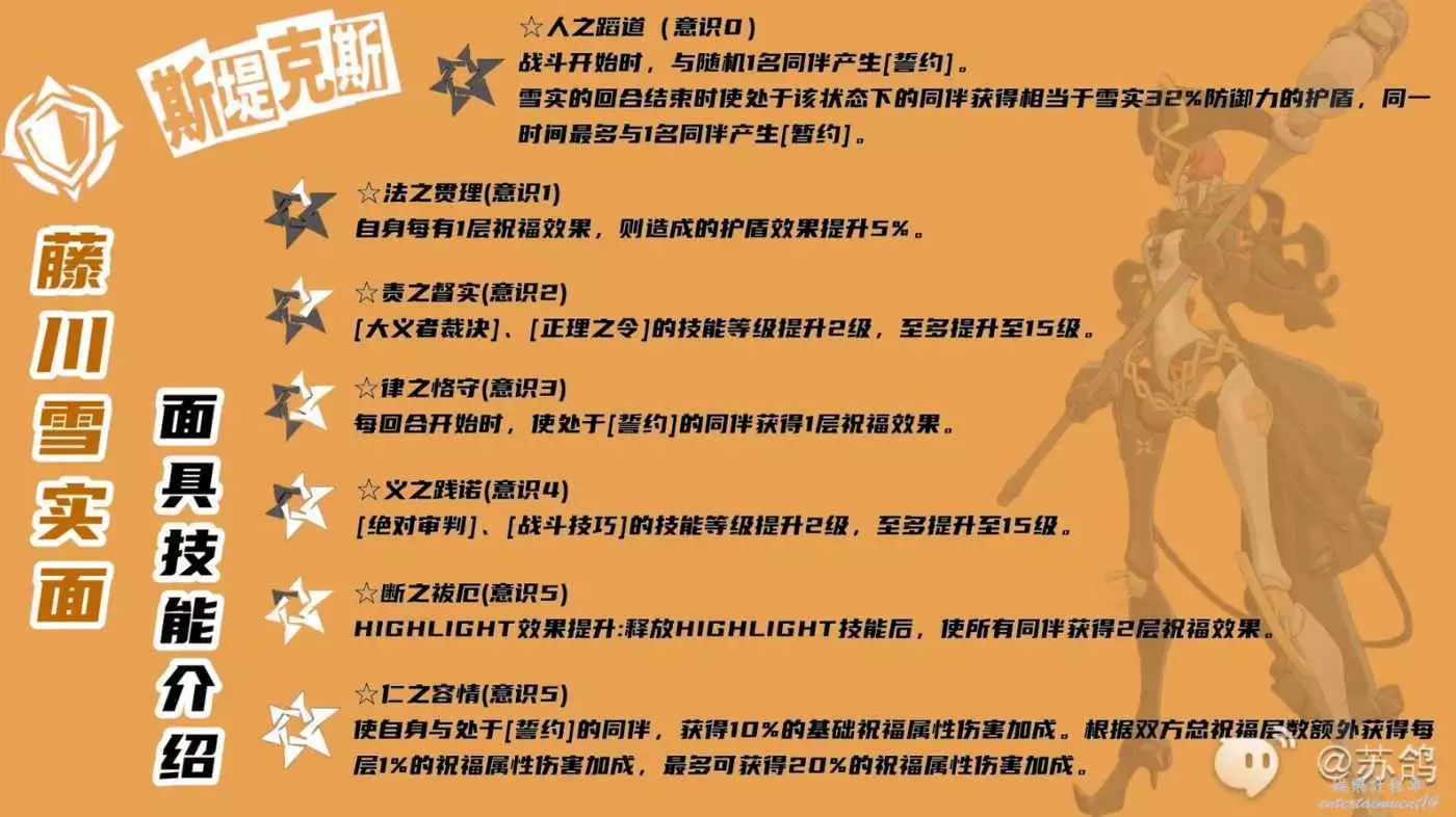 藤川雪實的主要被動技能,可以通過【誓約】增加隊友生存能力,以及提高自己的輸出能力。
