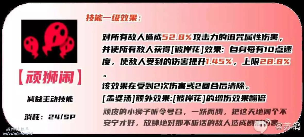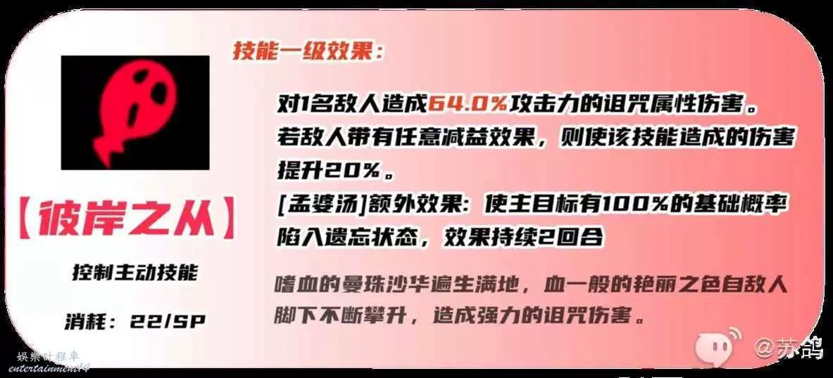 ②【孟婆湯】額外效果,【彼岸花】的增傷效果翻倍。