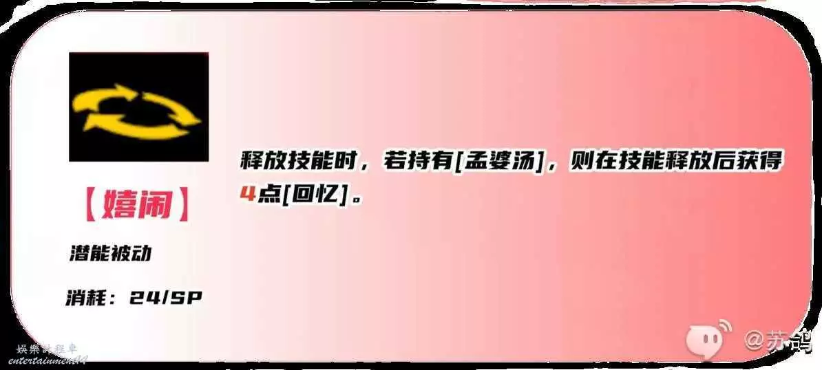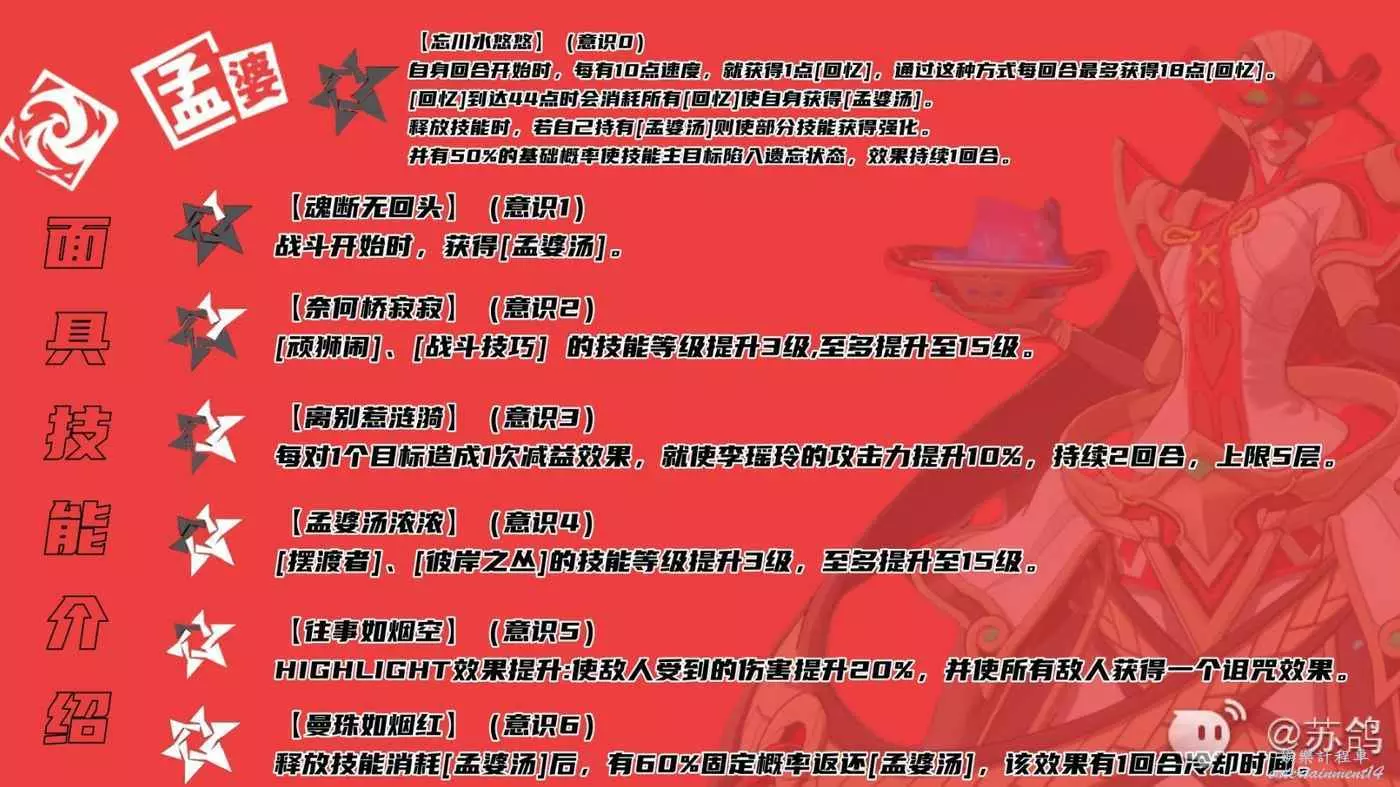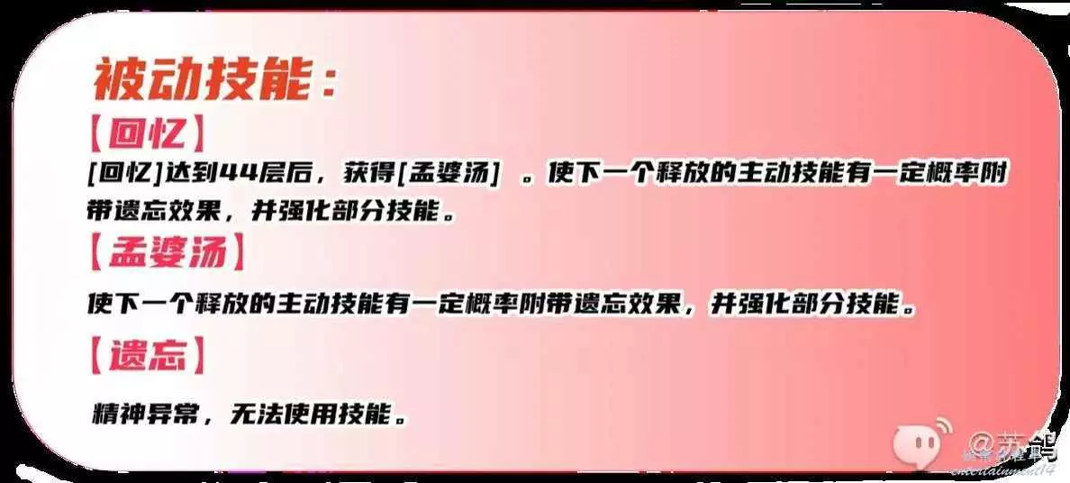 潛能被動技能,潛能(突破)1級後解鎖,釋放【孟婆湯】增益的技能,可以獲得額外的【回憶】層數。