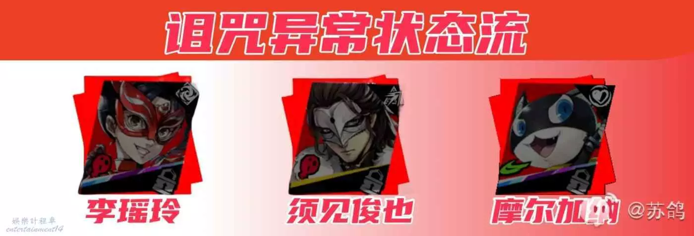 李瑤玲的技能【擺渡者】可以增加負面狀態,同時【彼岸之從】和【頑獅鬧】如果有【孟婆湯】的加成也可以造成增加負面狀態的攻擊,配合JOKER的技能【厄運追擊】可以造成高額的爆發群傷。