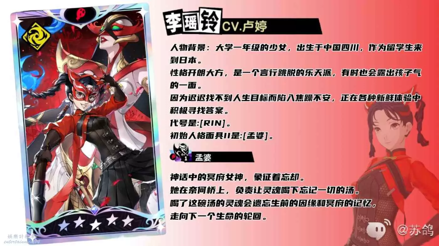 孟婆:作為李瑤玲的專屬面具,隨著意識的境界可以更好的提供對自己增傷,對敵人增加負面狀態的效果,建議至少進階一次意識,開局即可獲得【孟婆湯】可以更好的迴圈增傷和增加負面狀態的能力。