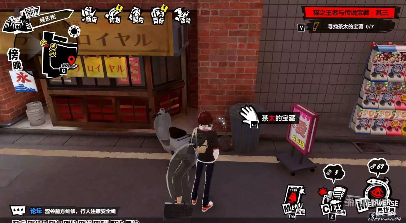 女神異聞錄 夜幕魅影 新宿茶太的寶藏位置 18 4 月 2024-04-18 廣告 作者:瑞破受氣包 來源:遊民星空 貓之王者與傳說寶藏·其三 新宿茶太的寶藏地圖位置 ※玩家等級40級解鎖此任務。 寶藏01 寶藏02 與居酒屋互動拾取。 寶藏03 寶藏04 寶藏05 寶藏06 走樓梯到二層拾取。 寶藏07 與珠寶店互動拾取。