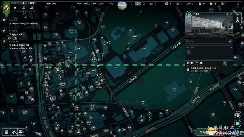 不過,地圖屬性中包含的學校,醫院,公園等會具有其特殊意義,例如醫院中會有醫療補給品,學校會有研究科技,公園會更大幾率出現樹木資源。
