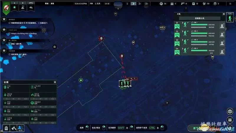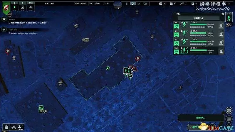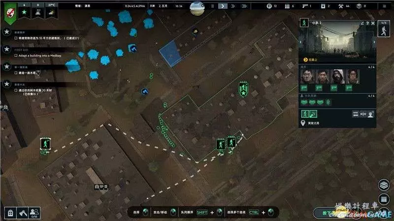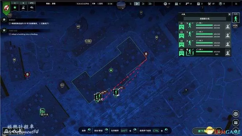 不過1個小隊是遠遠不夠發展要求的。你可以額外訓練3-4個小隊,火力全開奔赴廢棄建築,開始掠奪建築物中的資源。