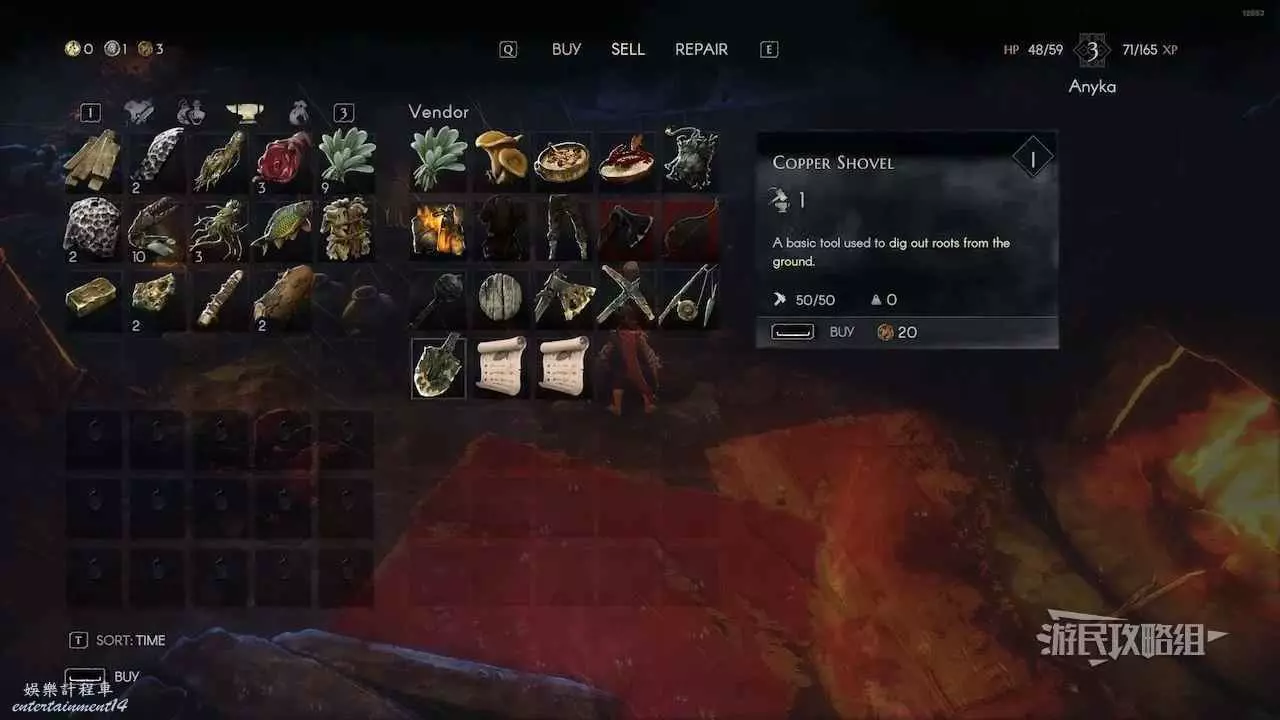 惡意不息 (No Rest for the Wicked) 鏟子位置及獲取方法 19 4 月 2024-04-19 廣告 作者:瑞破受氣包 來源:遊民星空 惡意不息鏟子獲取方法 跟隨主線進入水手寨並在餐廳救出鐵匠菲爾莫之後,即可從餐廳的菲爾莫這裡購買一把鏟子,價格為20銅幣。地圖位置如下圖所示,白色星標為菲爾莫位置,紅圈位置為餐廳鑰匙位置。 除此之外,在開放世界的寶箱中,也能隨機開出鏟子,由於開啟寶箱獲得的道具是隨機的,所以這裡不列出寶箱的具體位置了。總而言之,如果在淺灘和水手寨的各個寶箱中沒有開出鏟子的話,就可以考慮從菲爾莫這裡買一把。