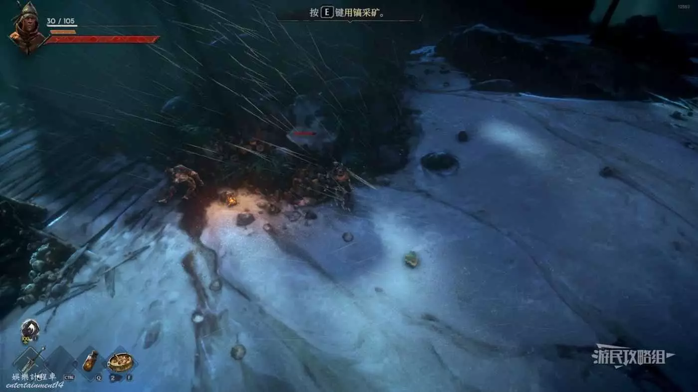 採礦需要先裝備鎬子,裝備鎬子之後,靠近礦石後介面上方會出現可以採礦的提示,然後按E即可採礦。