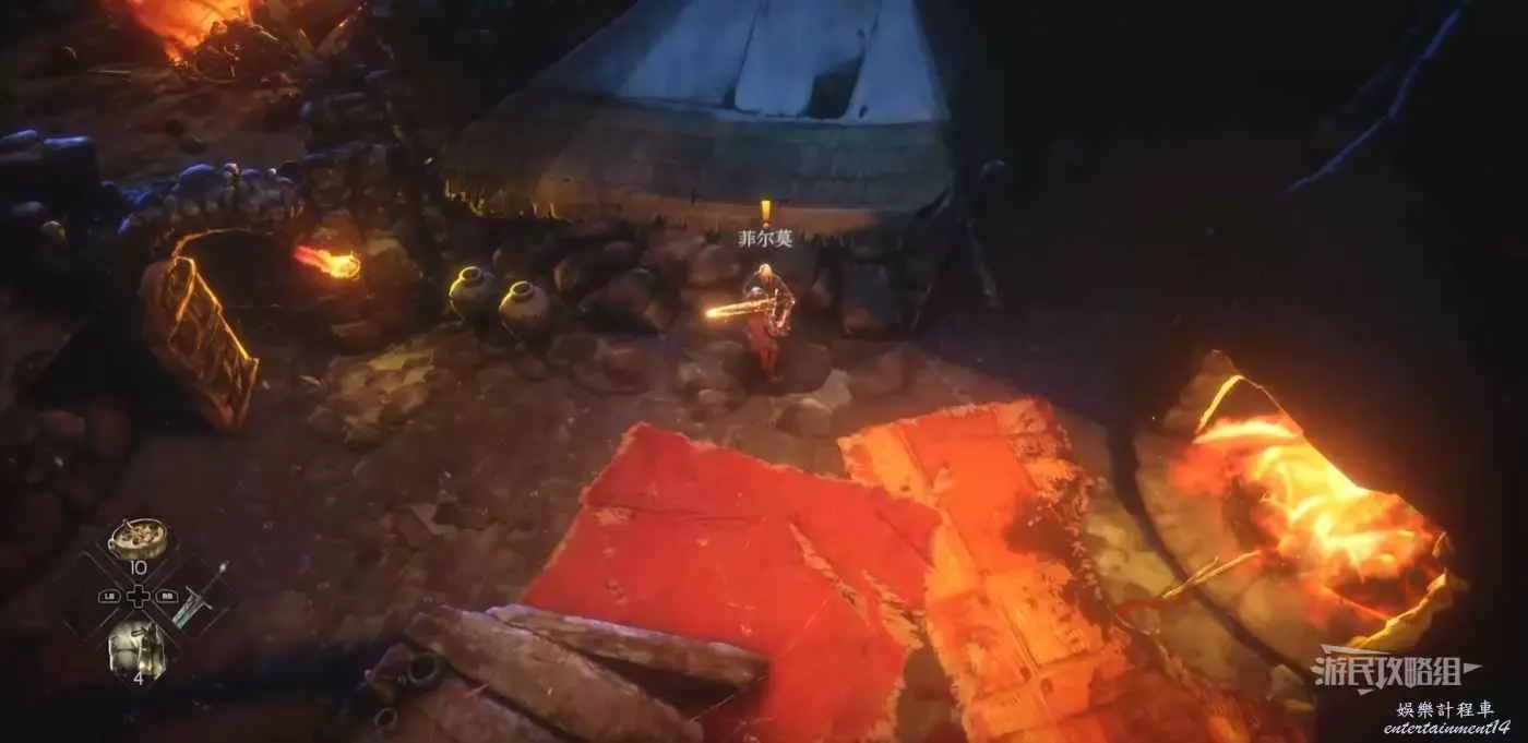 惡意不息 (No Rest for the Wicked) 餐廳鑰匙位置及獲取方法 20 4 月 2024-04-20 廣告 作者:瑞破受氣包 來源:遊民星空 惡意不息餐廳鑰匙獲取方法 餐廳鑰匙的地圖位置如下圖所示。由於搶先體驗版無法調整視角,在到達此為止附近後要注意螢幕下半部分,留意城牆下方的拱形缺口即可。 穿過拱形缺口到達木制平台,鑰匙就在平台上的一具屍體上。 惡意不息餐廳和菲爾莫位置 鐵匠菲爾莫在餐廳裡,如下圖星標位置所示(紅圈位置為餐廳鑰匙位置),拿到餐廳鑰匙後及閘互動開啟大門。擊敗右側的三個敵人即可救出菲爾莫。