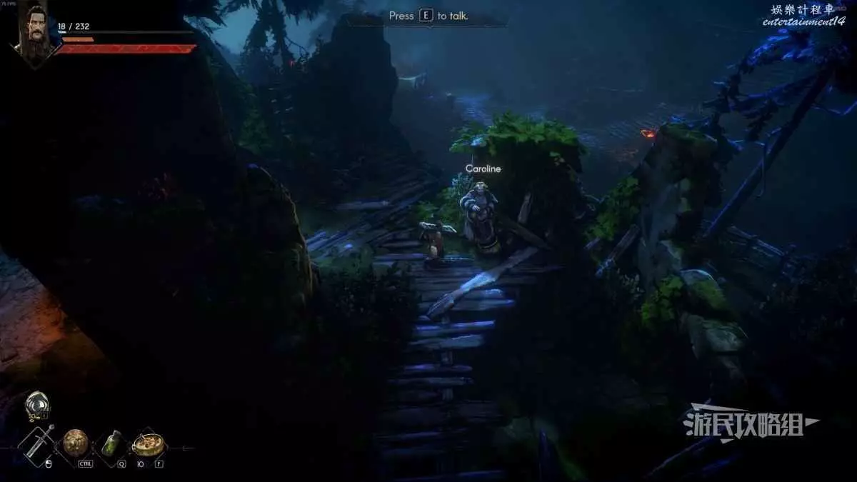 擊敗變異者瓦立克後進入聖城,穿過一扇拱門可以看到一個名為卡洛琳的NPC,與她交談了解她的煩惱,即可觸發此任務。按照上文步驟拿到西橋鑰匙,然後在路上使用西橋鑰匙把她丈夫戈登帶回家即可完成任務(無需護送,只需踢下梯子打通通路即可)。