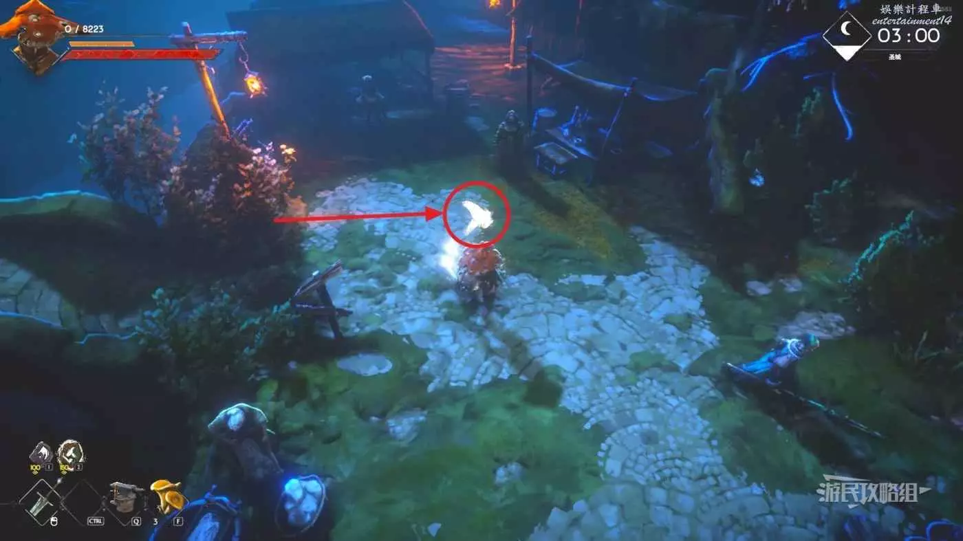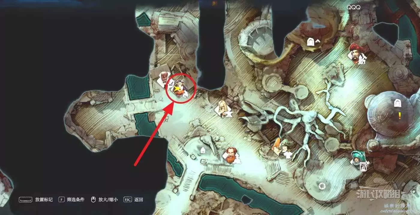 到達聖城後,前往聖城左側的市場找到埃莉諾。具體位置如下圖所示。