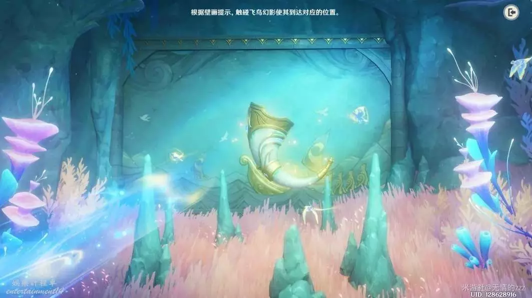 6.我們需要先將圖中的號角對準圖中的壁畫