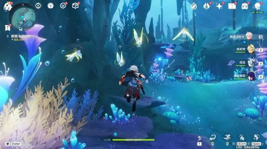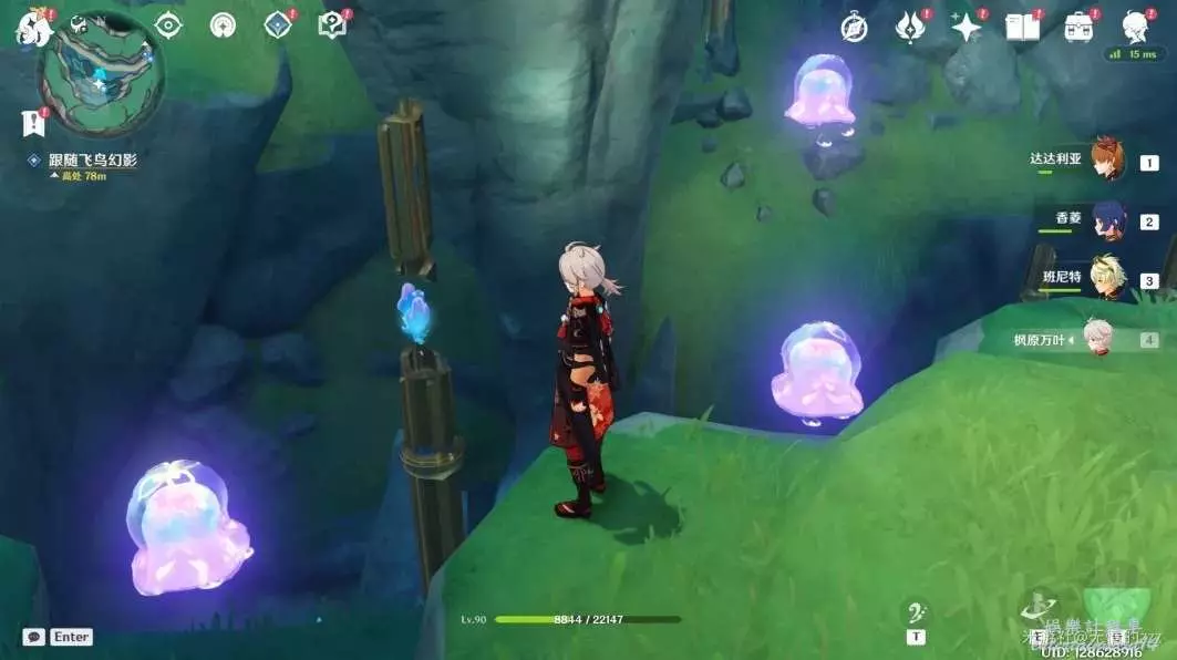 14.在觸碰飛鳥時,我們可以利用底下的粉紅色彈跳水母進行跳躍