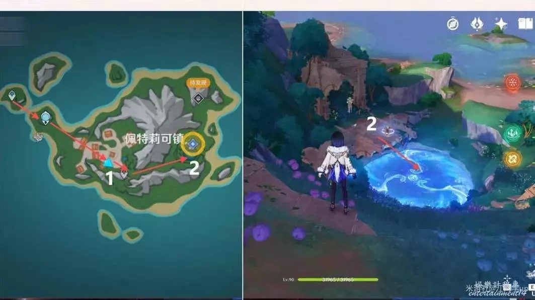 (1)完成魔神任務序章·第三幕「巨龍與自由之歌」後,將自動解鎖楓丹「佩特莉可鎮」下圖位置的錨點,然後往前走,開啟「佩特莉可鎮」七天神像後,繼續前面下去,即可接到該系列任務
