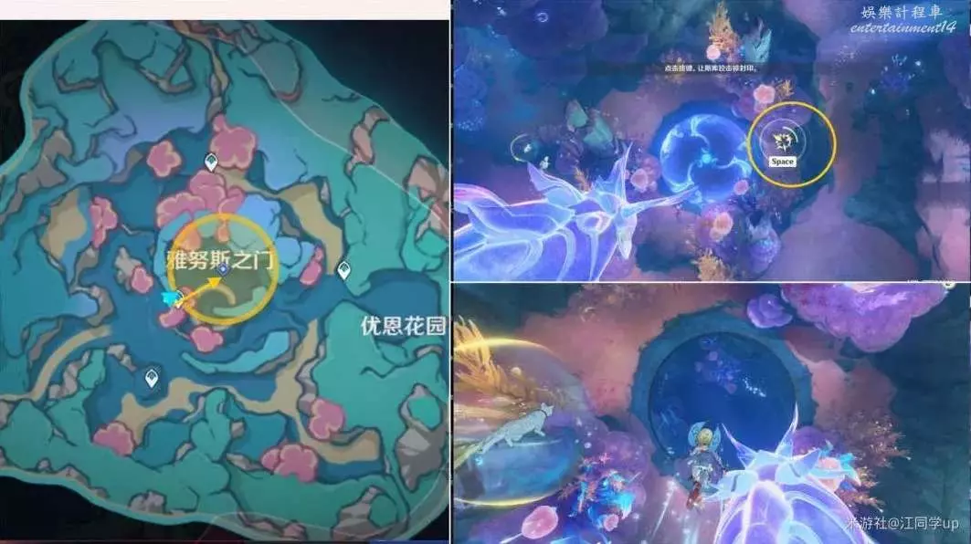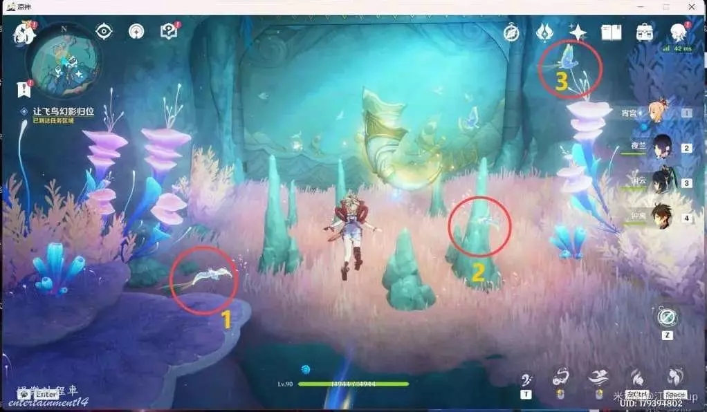 (4)然後去第3個任務點位置,需要先完成第3個任務點周圍3處【共鳴海葵】解密,每處【共鳴海葵】只需等章魚身上的圓圈包括住【共鳴海葵】後,先按T鍵,再按E技能,章魚就會暫停,【共鳴海葵】就會進入【共鳴狀態】