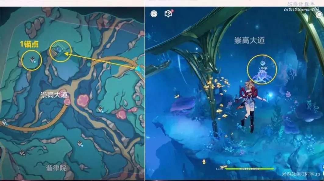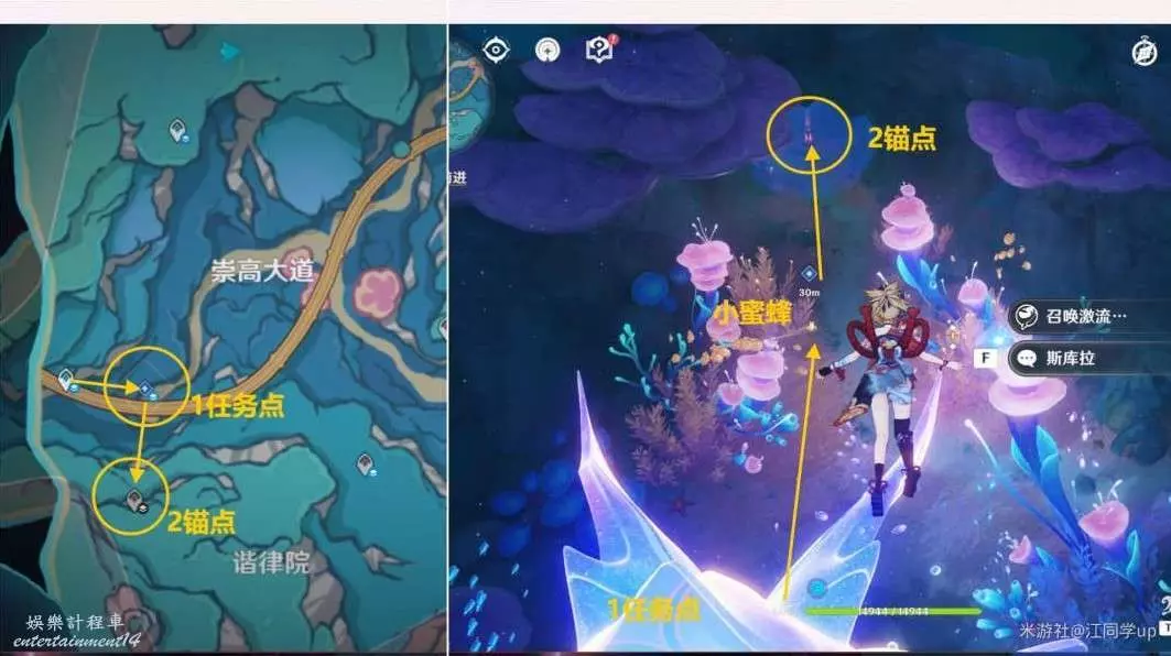 (1)接著追蹤任務【重建金色水道 · 其之二】,找到1任務點鯨魚後,去2錨點山洞