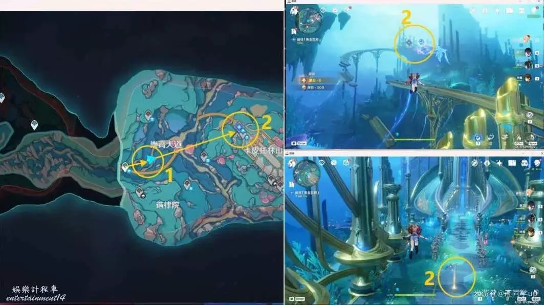 (2)接著追蹤任務先去1任務點過完劇情後,再去2任務點打完怪後,從2任務點的水池去下水