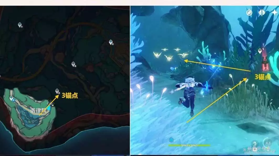 (1)先追蹤任務【重建金色水道 · 其之一】,距離鯨魚不遠時,可直接按T鍵,能快速飛到鯨魚跟前,順便解鎖一下1錨點