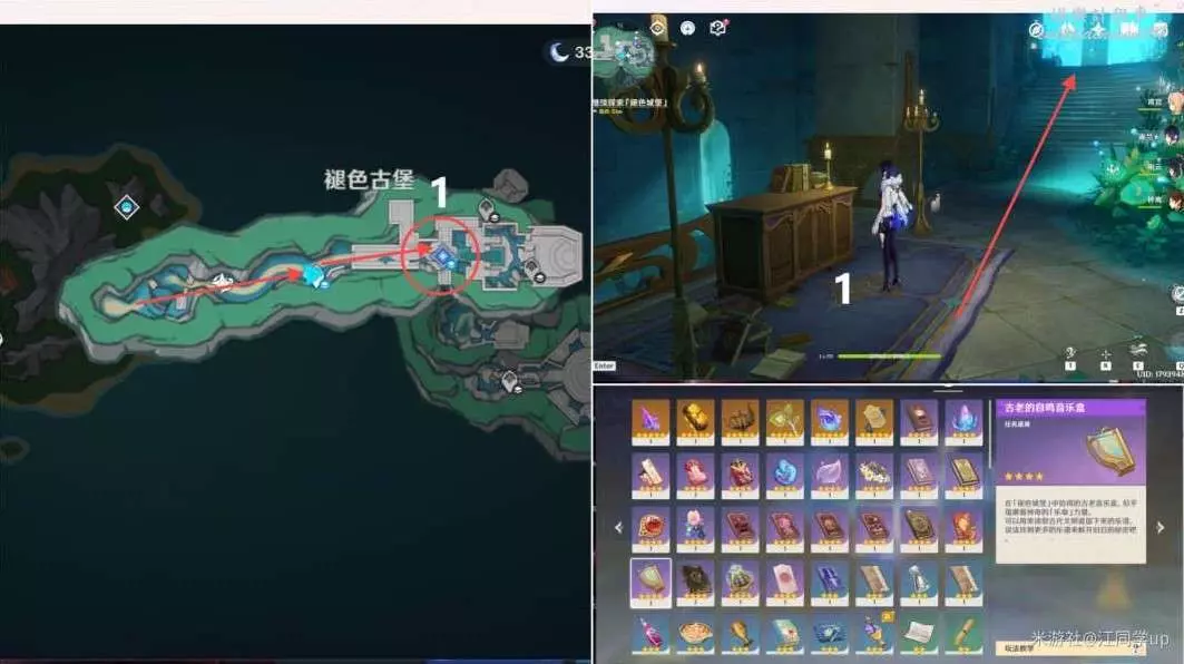 (3)到水下後,追蹤任務去下圖1任務點過完劇情後,可獲得任務道具【古老的自鳴音樂盒】,同時該階段任務結束